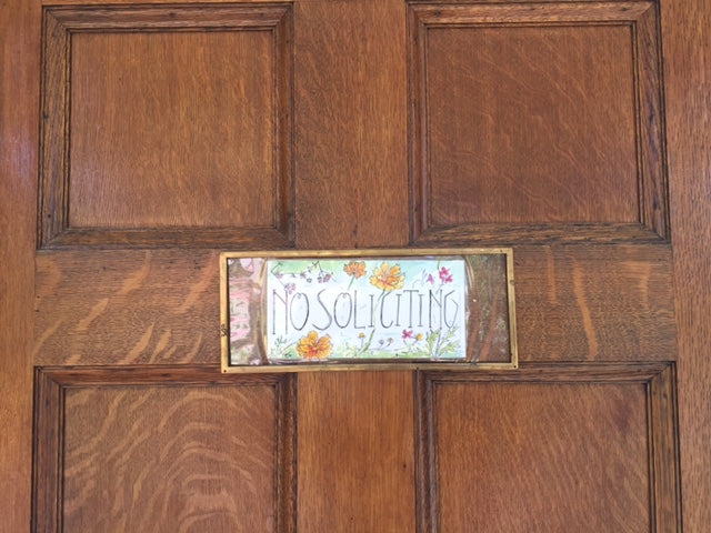 So, I was recently having a small conundrum: I want a No Soliciting sign on my door but I just don't love my options out there. I have heard many customers expressing the same sentiment and I just today figured out a solution I'm exciting about - label holders! Yes - perhaps it seems obvious now, but I just realized how awesome and varied label holders are and how easy it would be to make my own attractive sign. I chose a large one because my front door is up off the street and I'd prefer folks get the message before ascending my stairs.