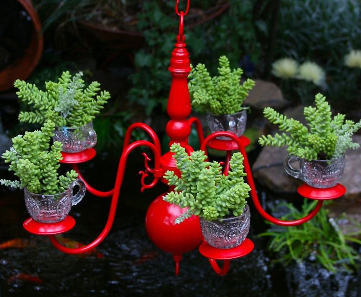 Don’t want to mess with wiring but want an eclectic look for your outdoor space? A fresh coat of paint and a trip to the garden center turns these Williamsburg chandeliers into planters!