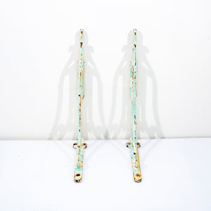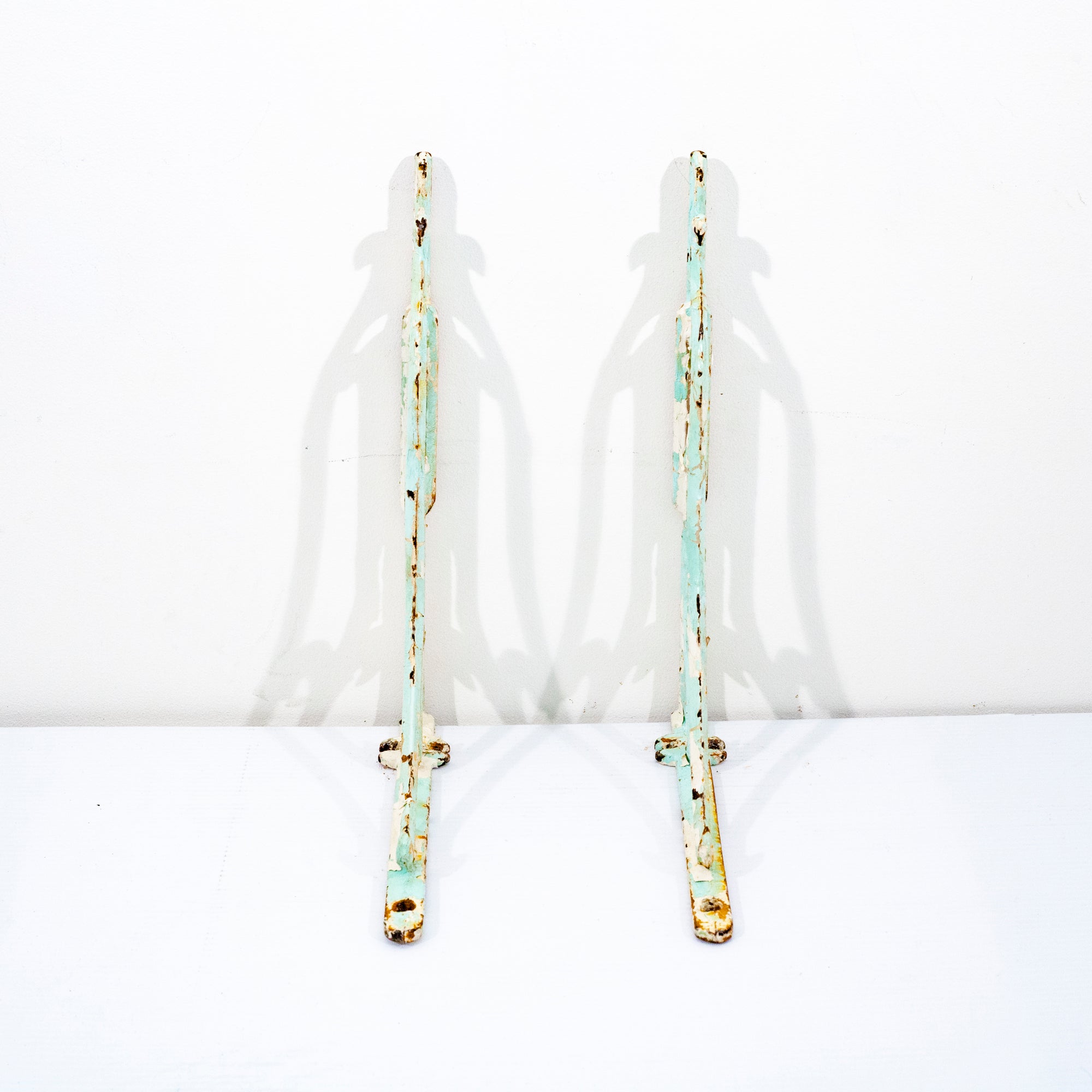 This heavy duty iron brackets were originally used to hold up a sink but could be used for anything from large shelves to wood crates! Sold as a pair (2). 1 available.