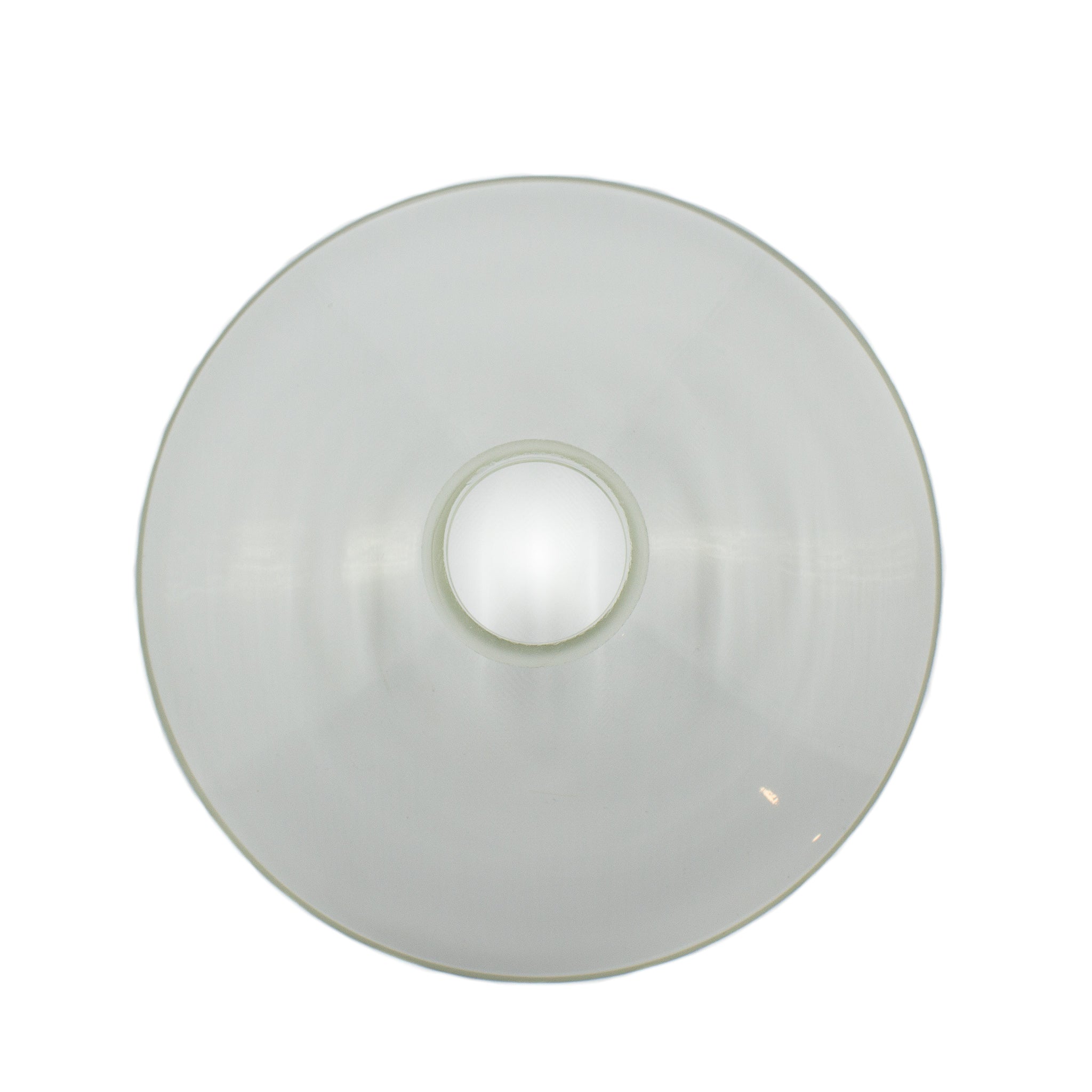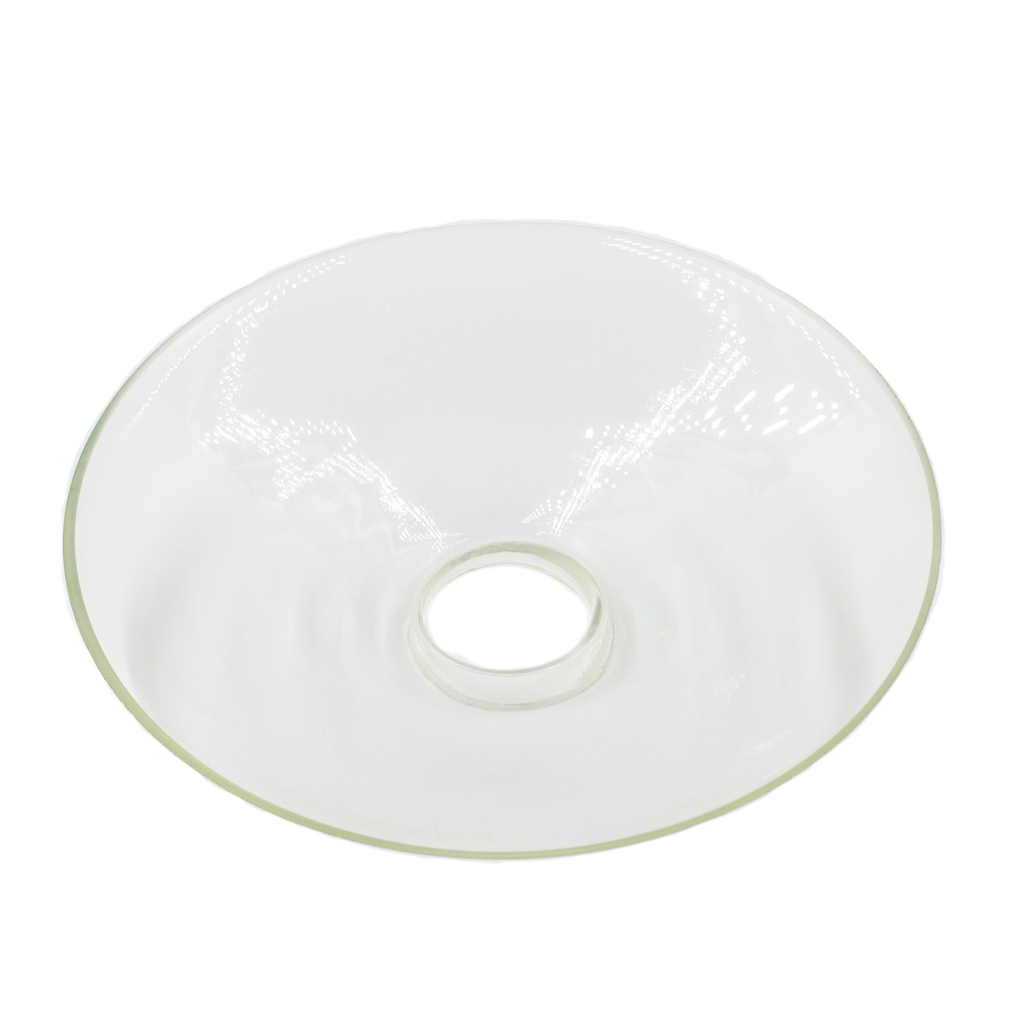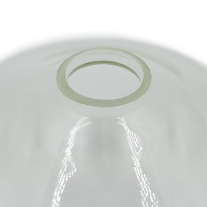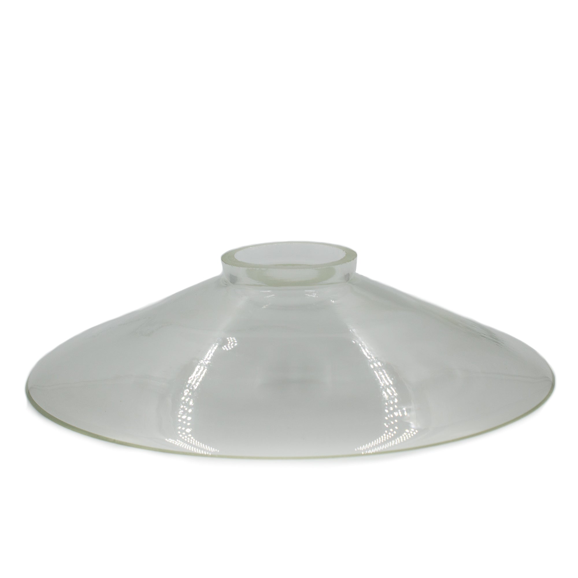 It's pretty clear, this shallow glass shade lets out all the light, in minimalist style. Great for showing off specialty bulbs!