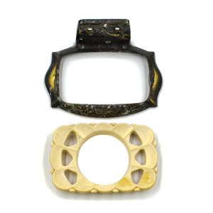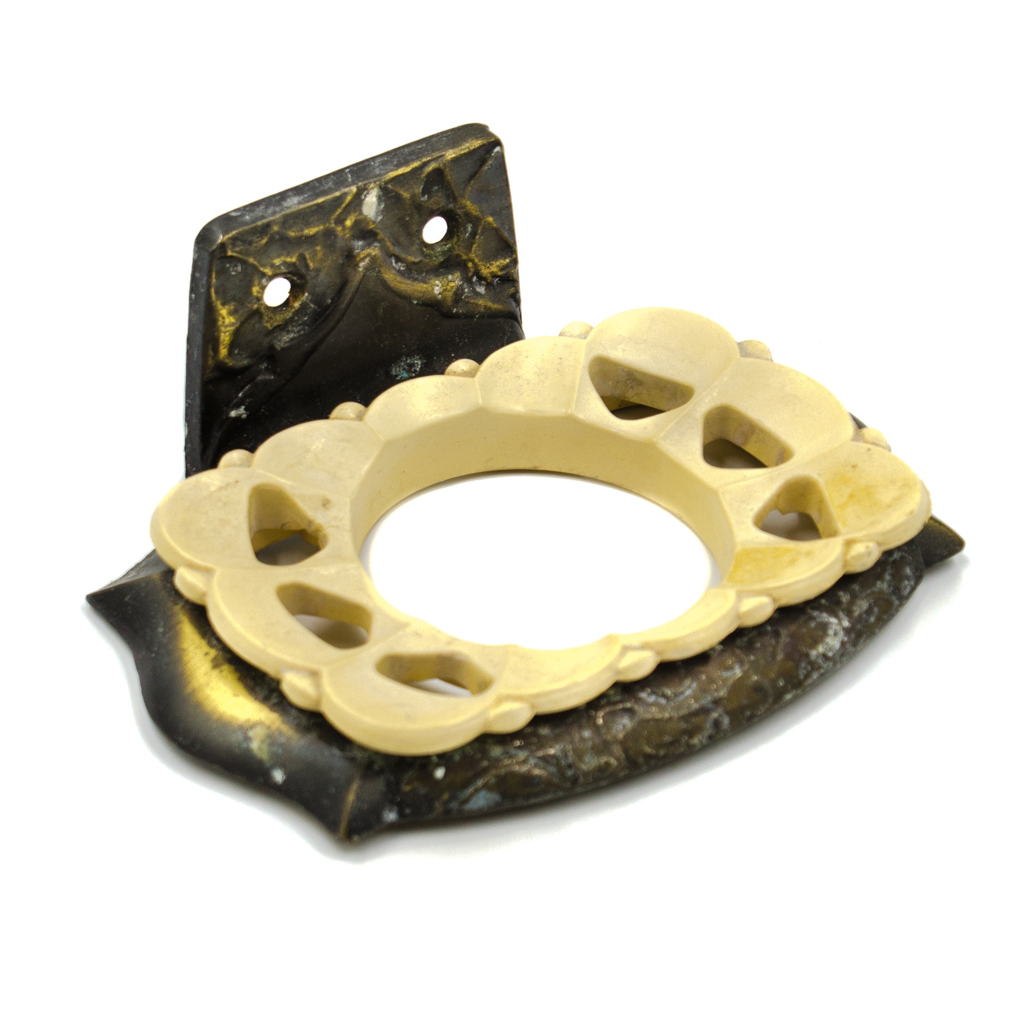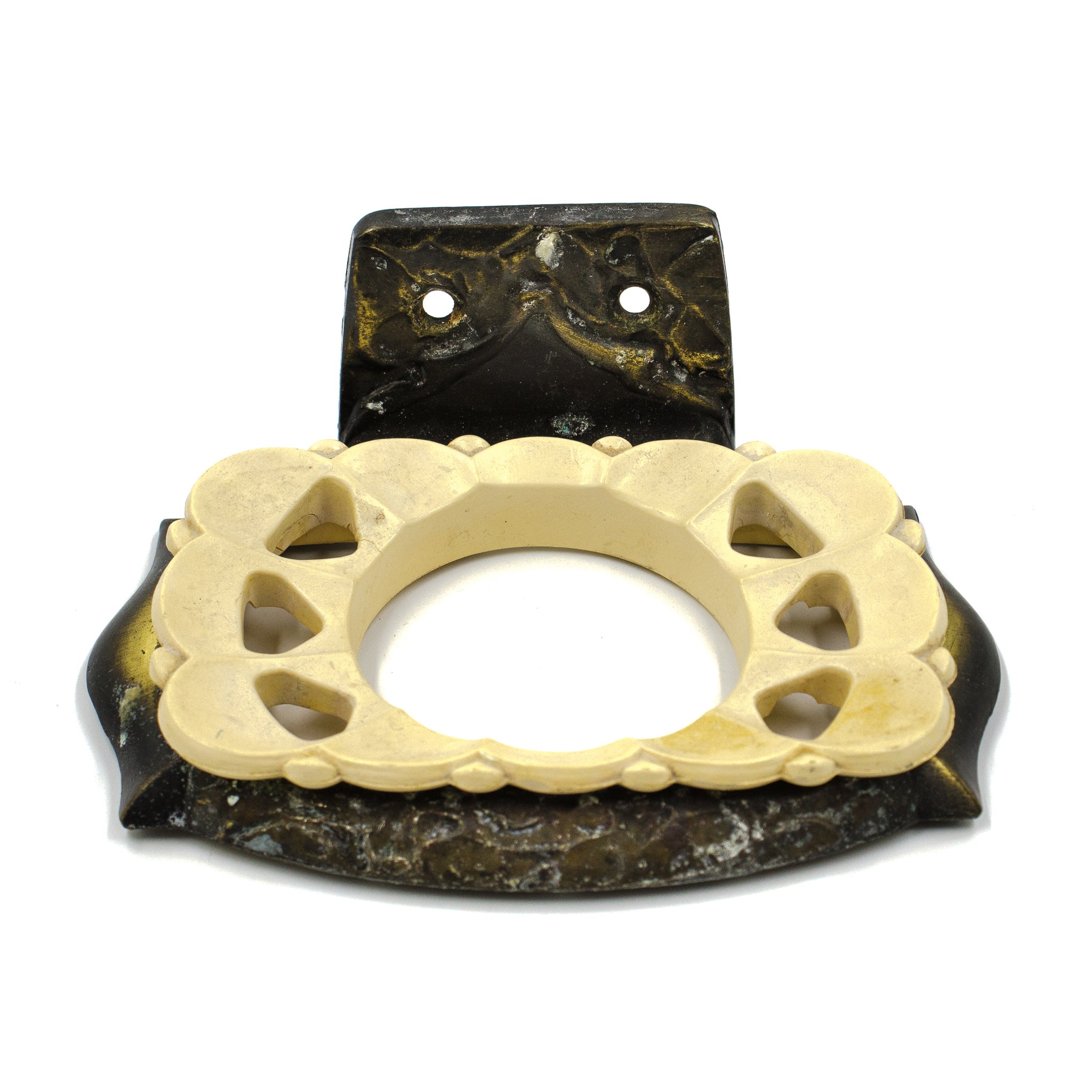 Condition: Good vintage condition. Some surface wear commensurate with age and one of the tabs that holds the pieces together is broken (see last photo)--the insert still sits in the holder just fine.