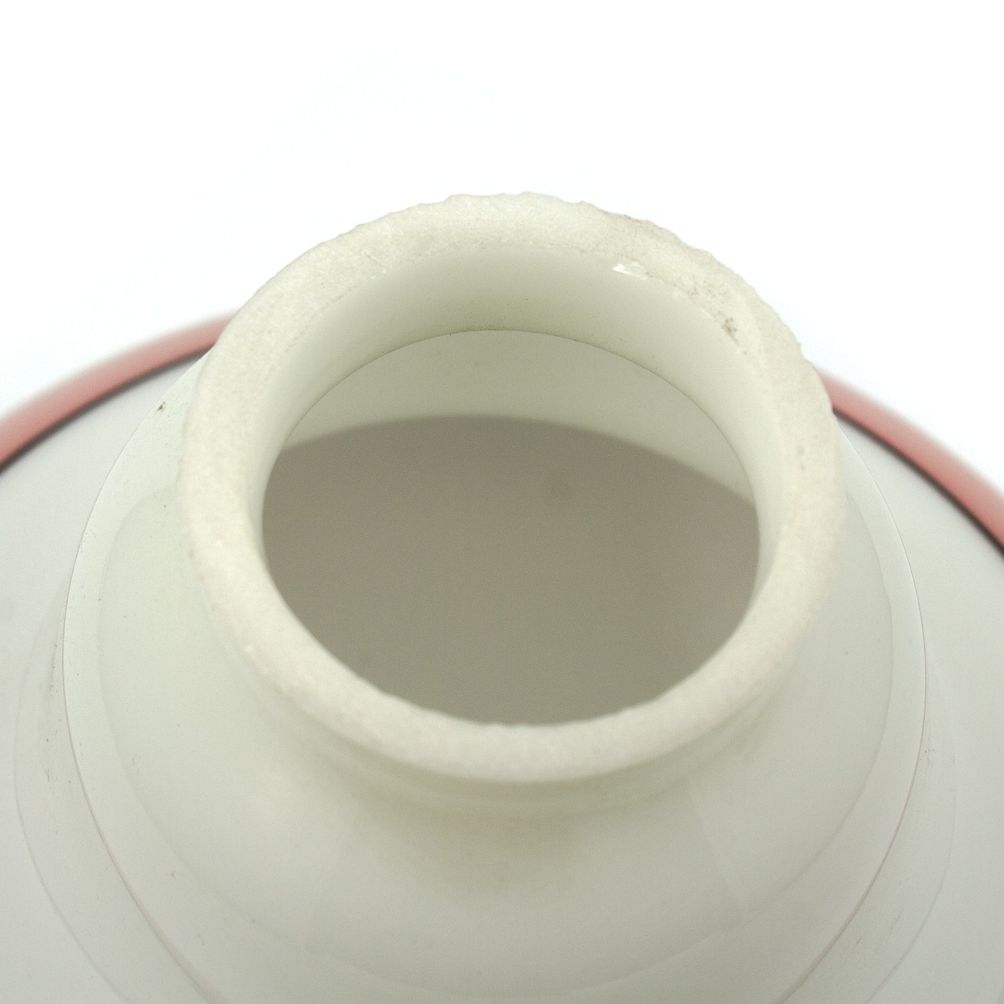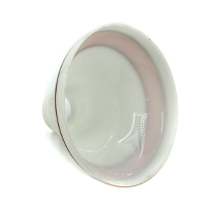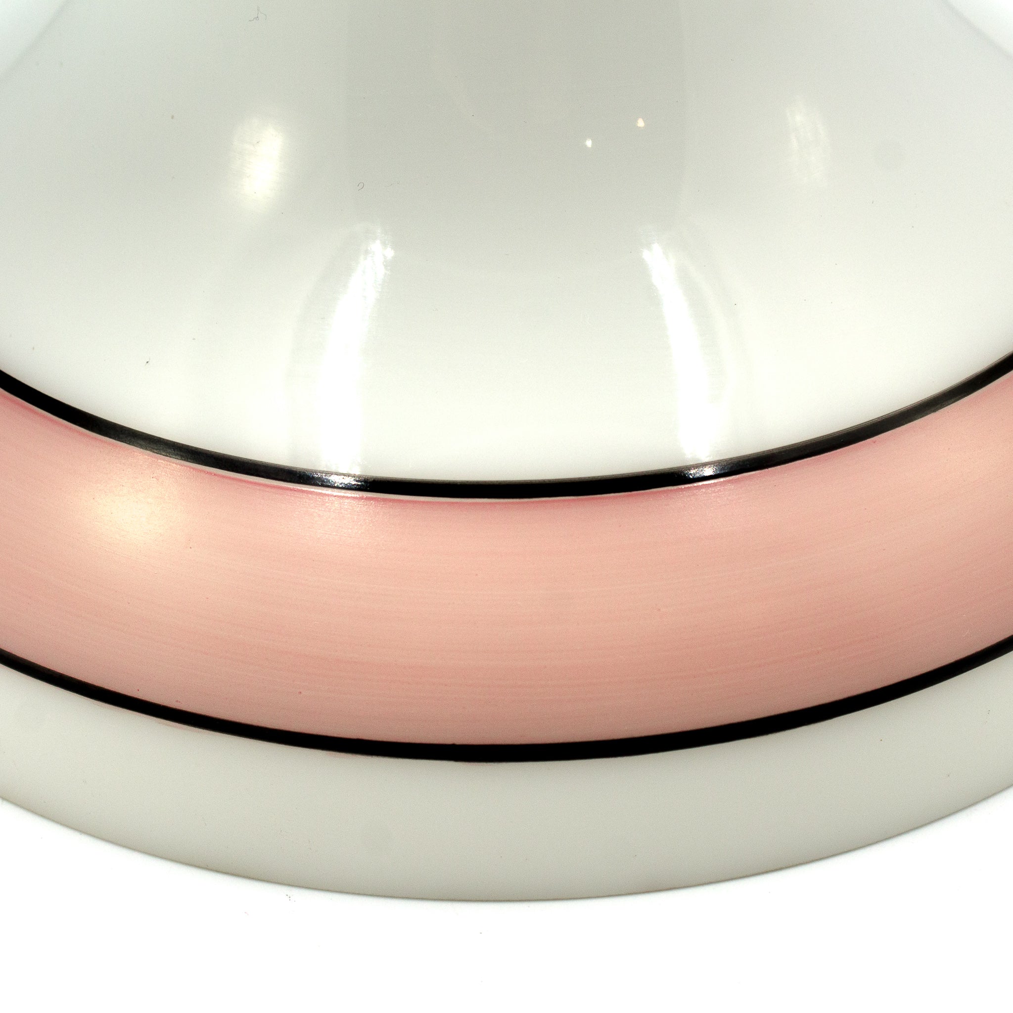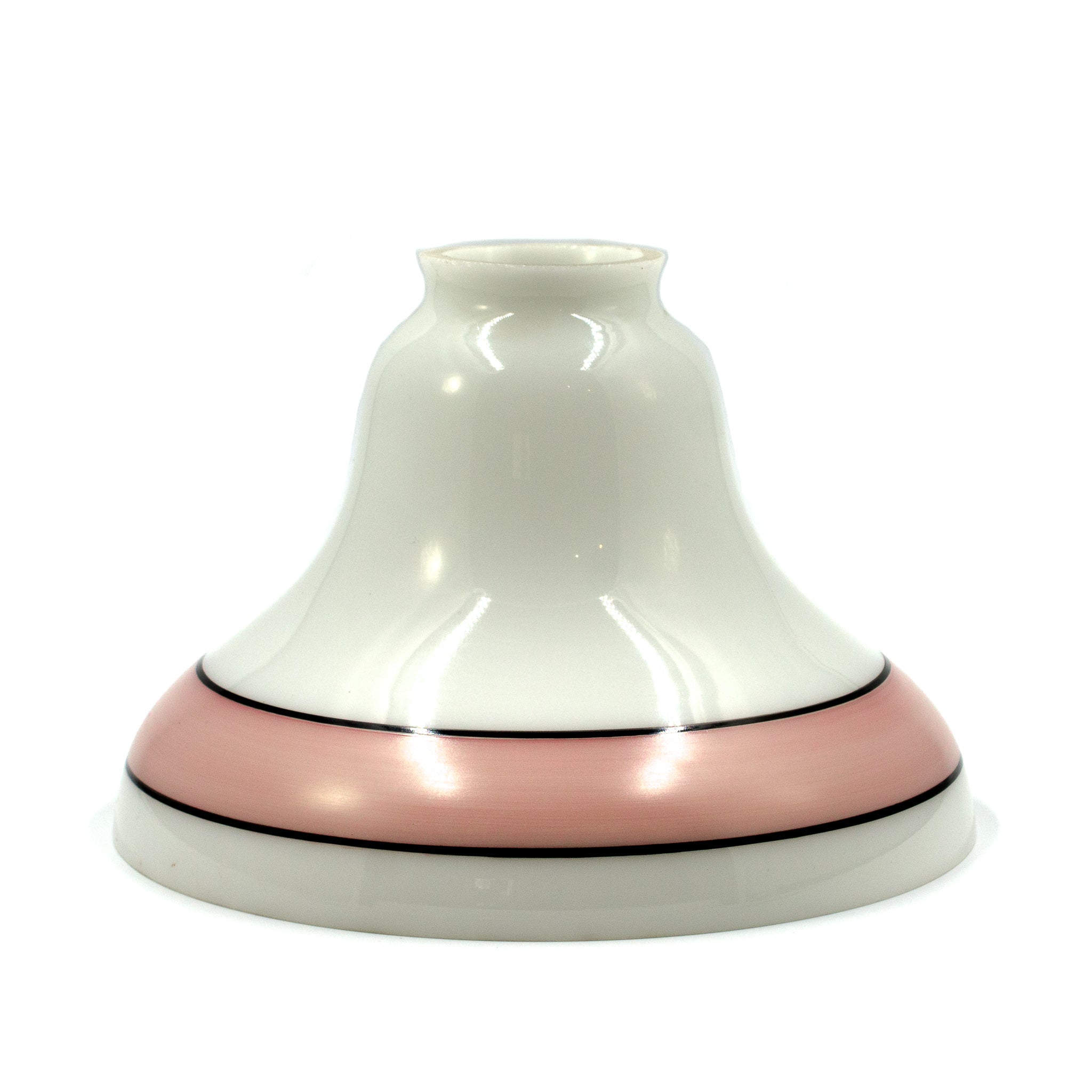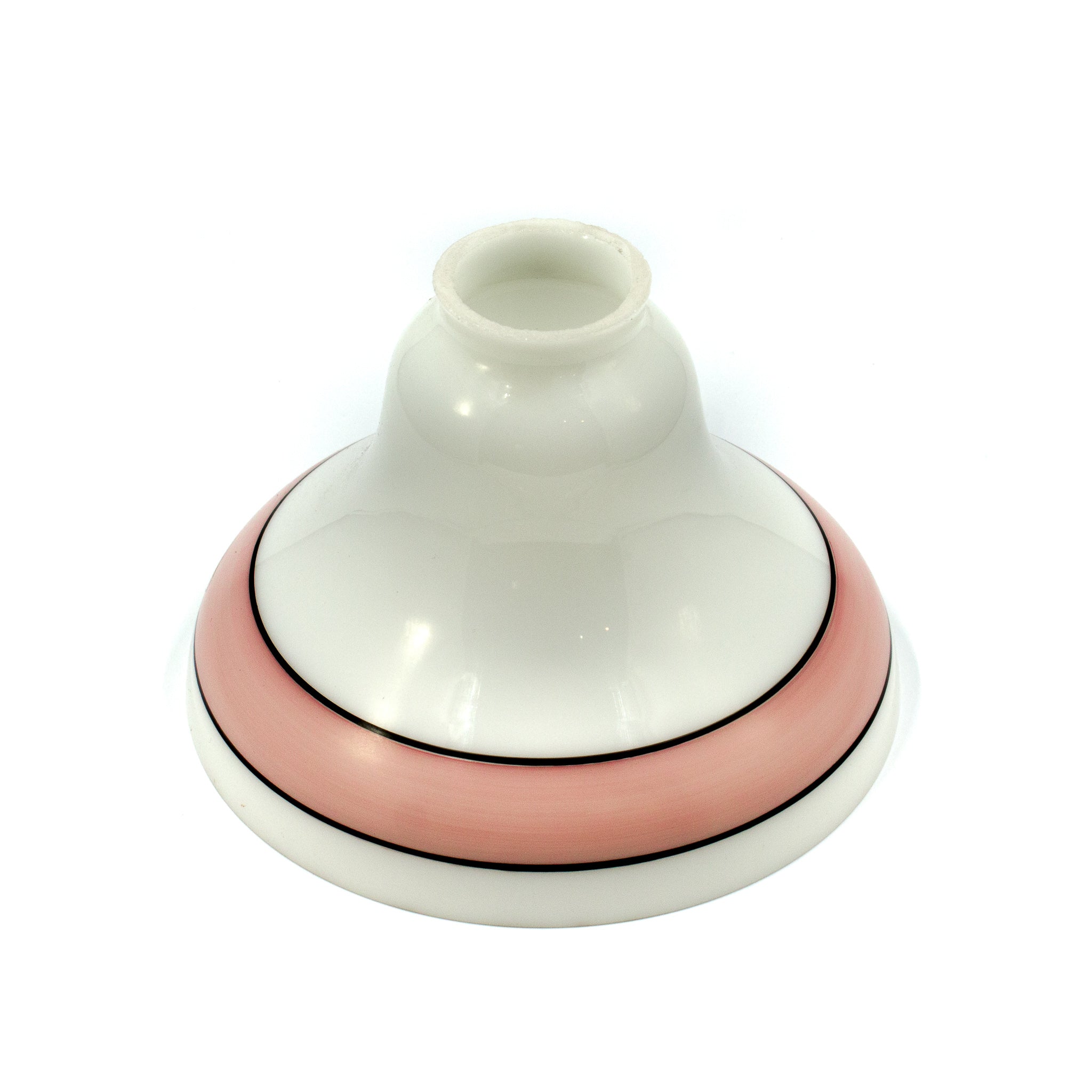 Lovely coral pink striped milk glass shade made by Schoolhouse electric. These shades are currently discontinued but so lovely!