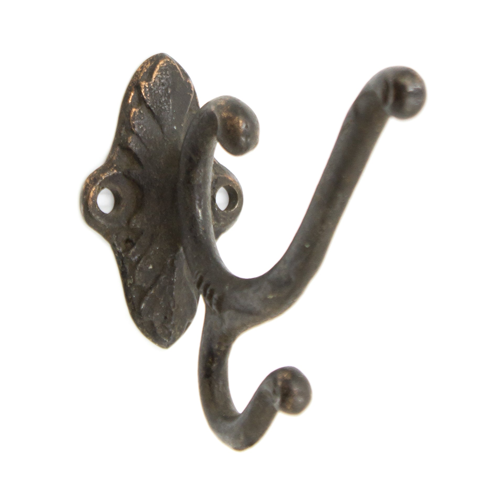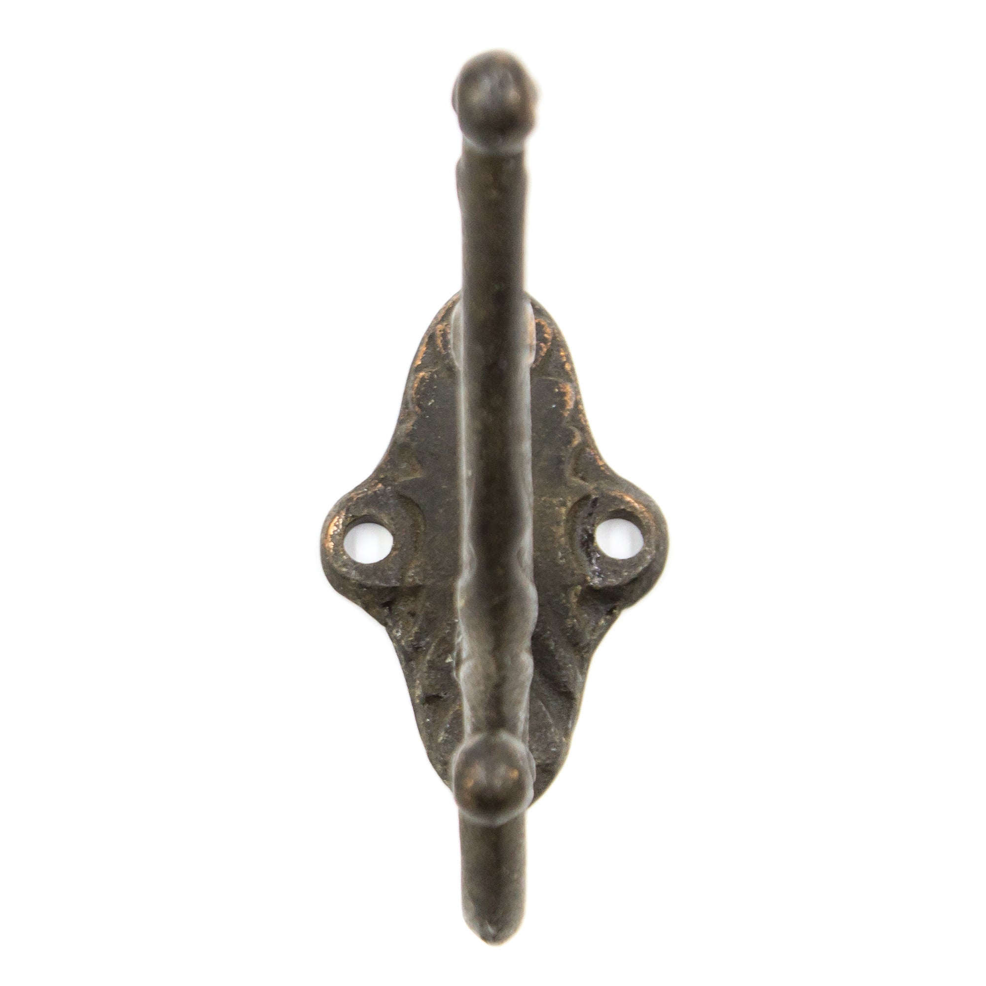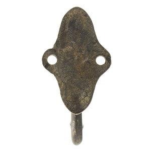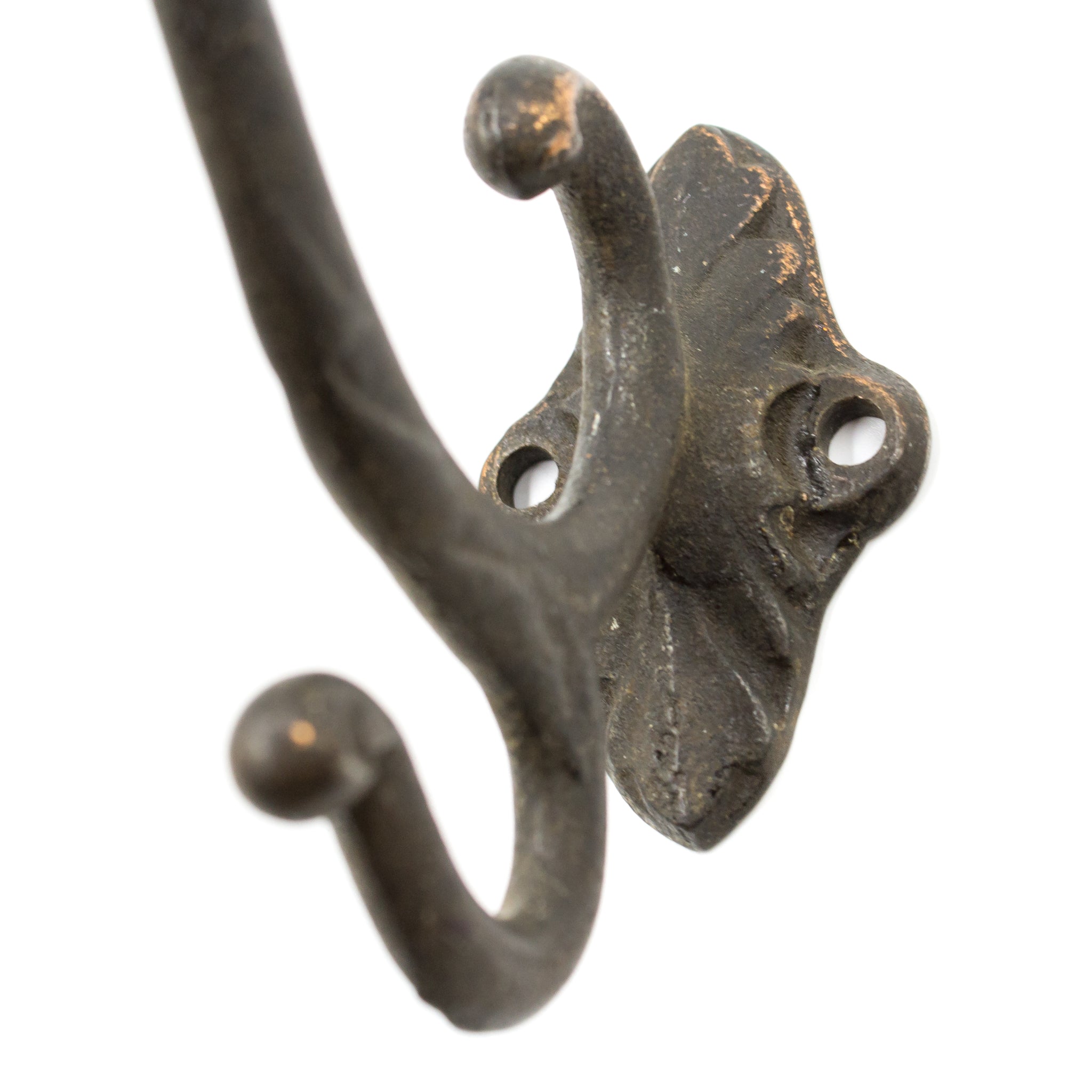 Graceful cast iron hooks like these deserve a spot on the wall, hook rack, or anywhere you see fit. Tidy up the place with a bit of old time charm! Small bits of copper flash japan finish are still visible. HALE is stamped into the sides and is visible. Sold individually.