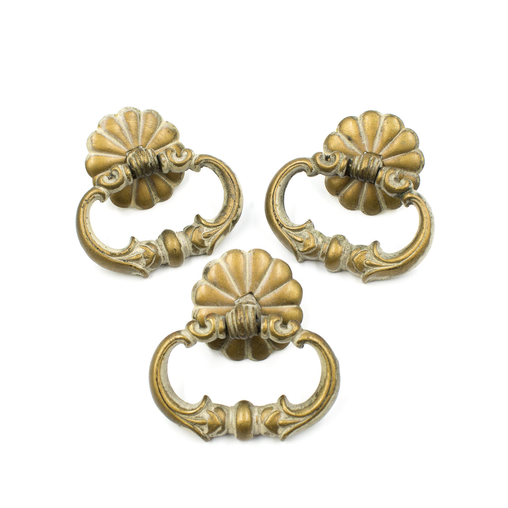 It's cool to mix metals, in the right measure! The matching white detailing on the bail and the petal mount match handsomely. A fine little trio to rehab old furniture or shake things up on something new.