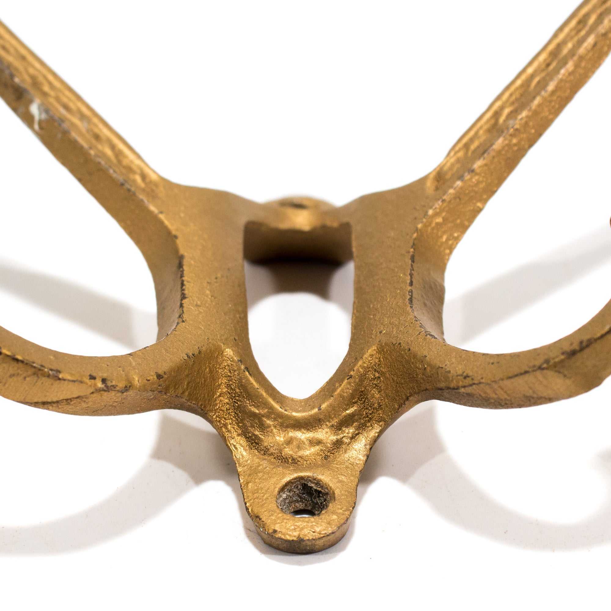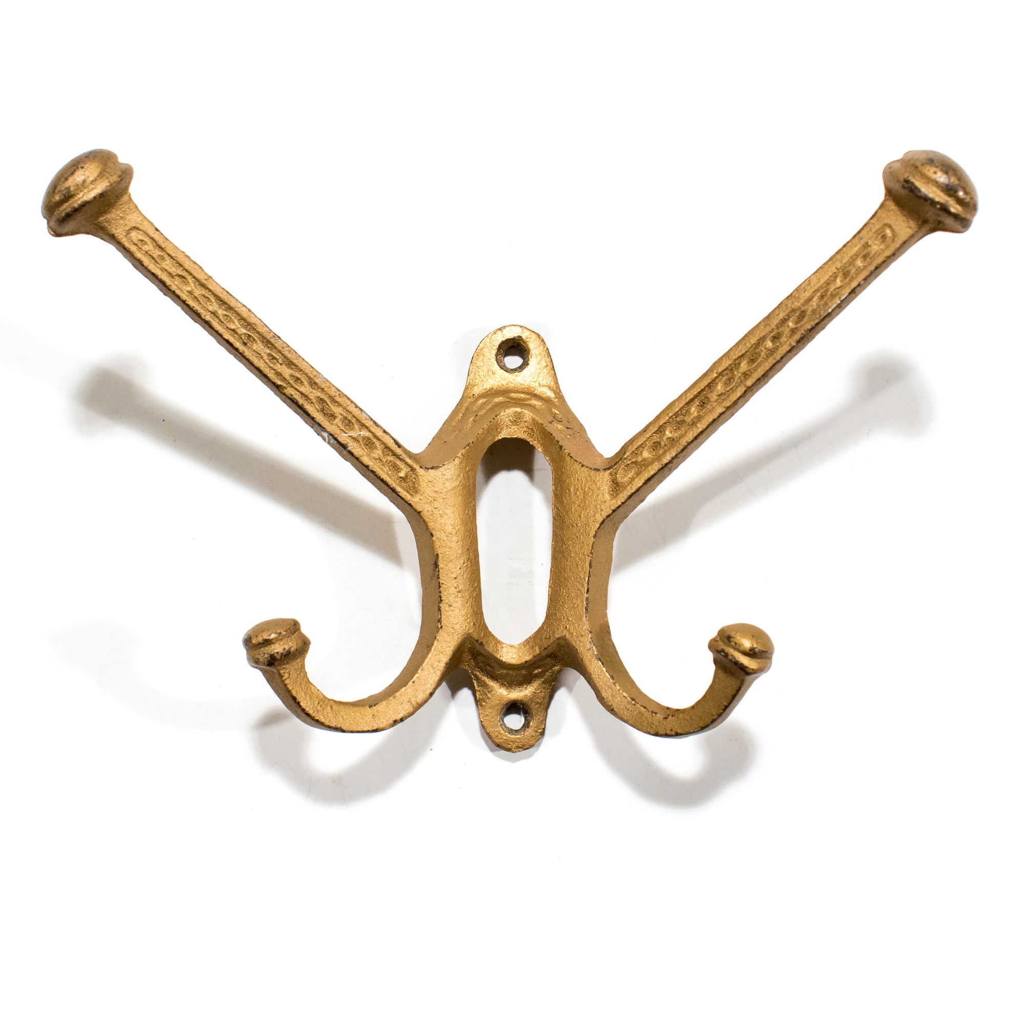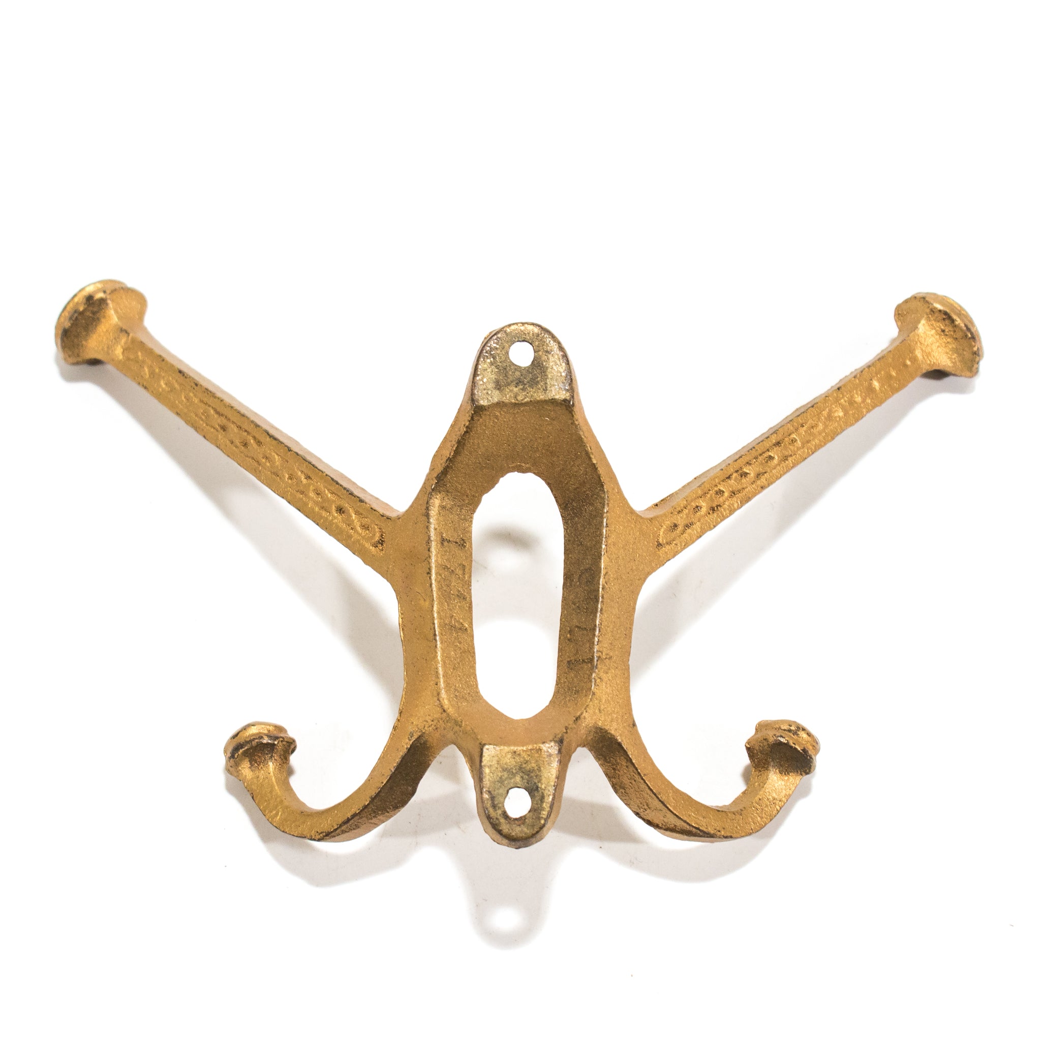 Amazing storage and beautiful form, this four prong hook is perfect for entry halls or little corners where you need to pile on some coats, bags, hats, or scarves. Made of cast iron. Sold individually.