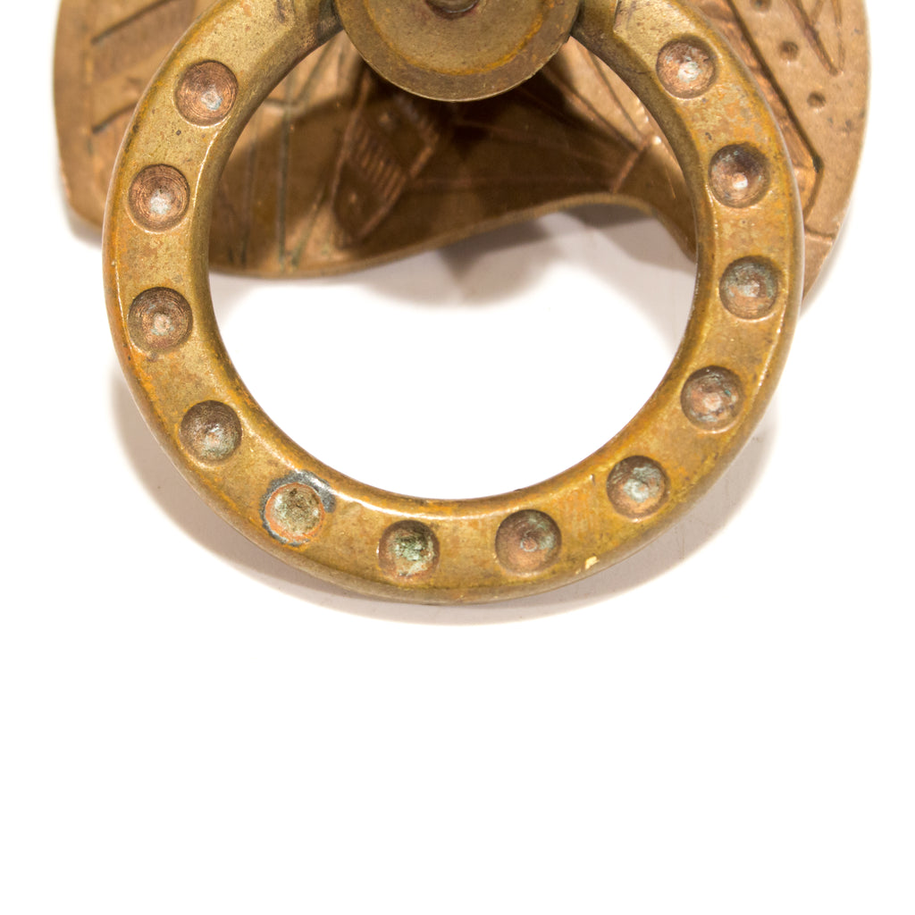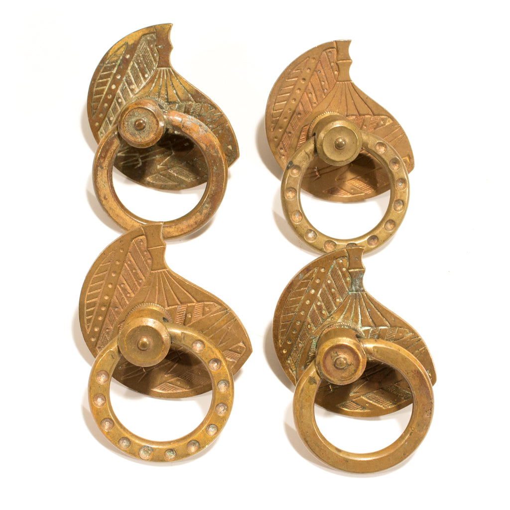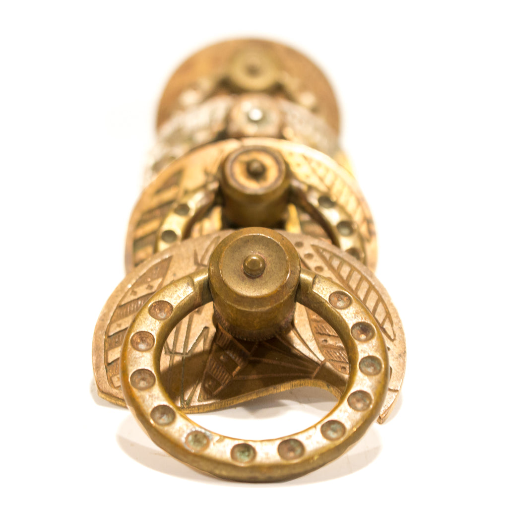 These unusual pulls bridge the Victorian Asian-influenced aesthetic with geometric lines and intricate detail with the heavy, burly design immediately following in the Craftsman era. A very interesting design sure to bring personality to your space. Made of cast brass.