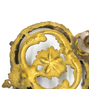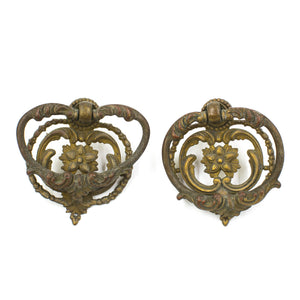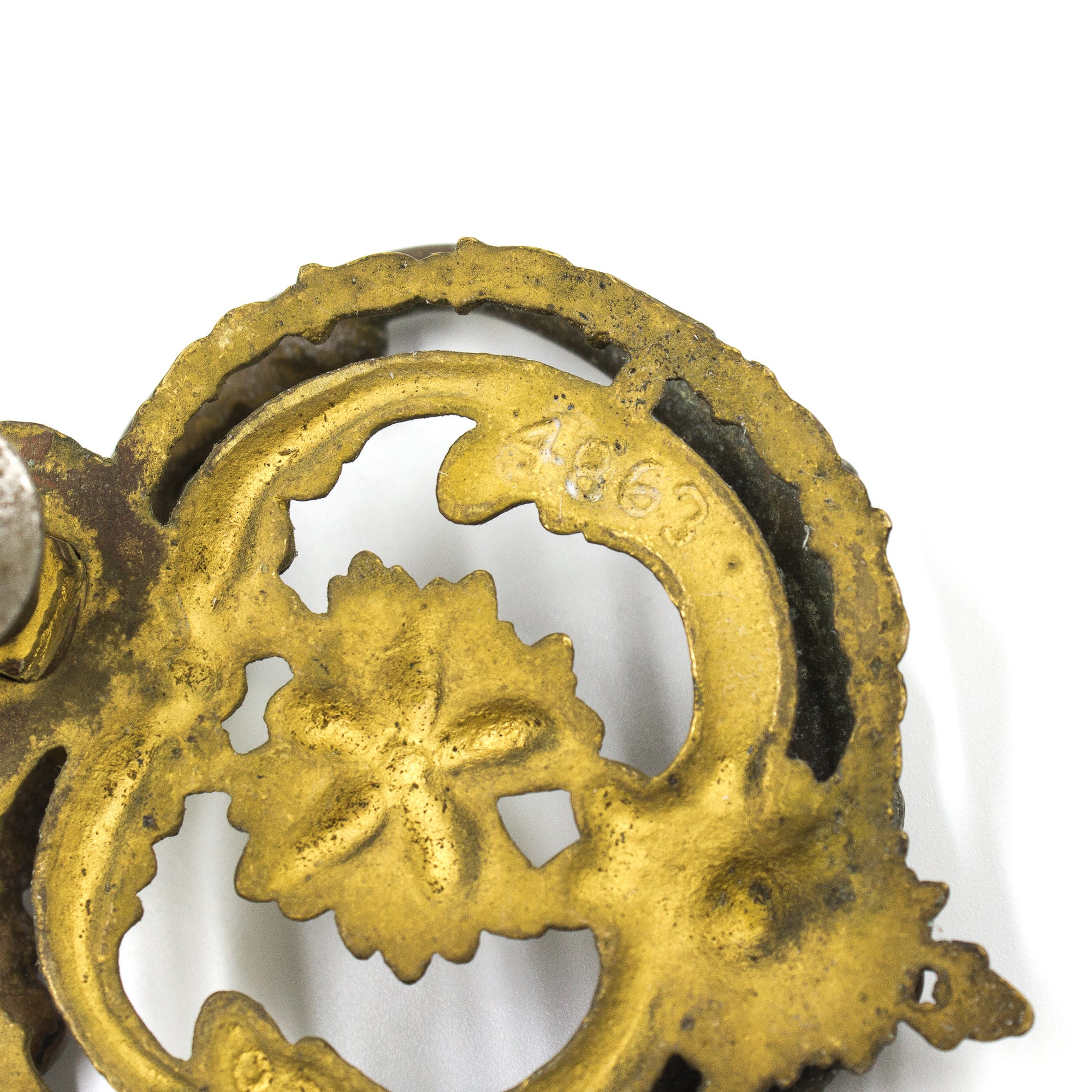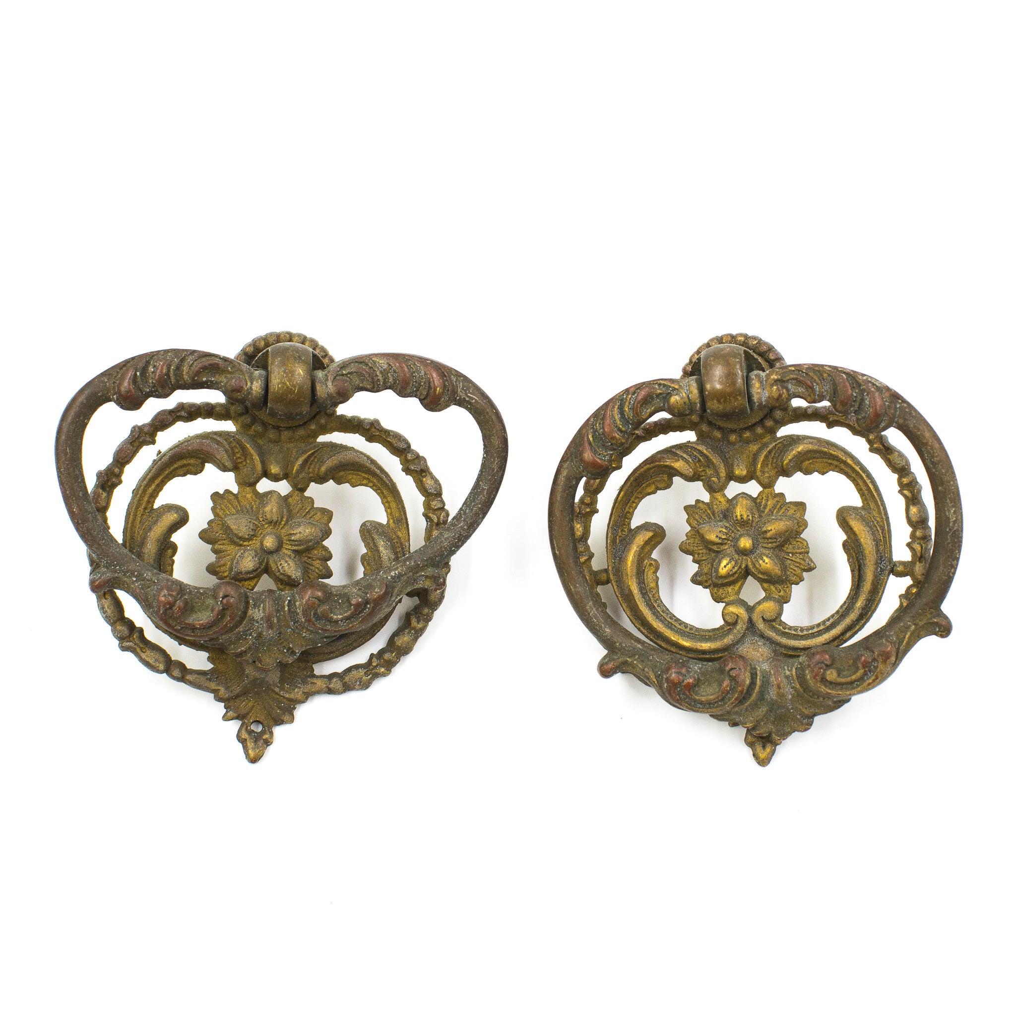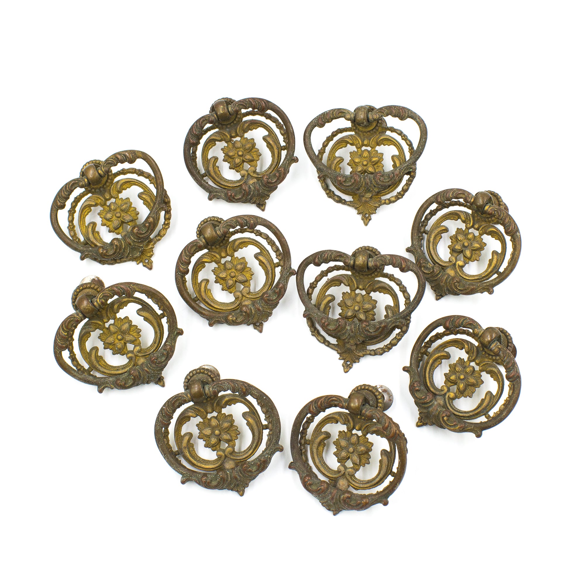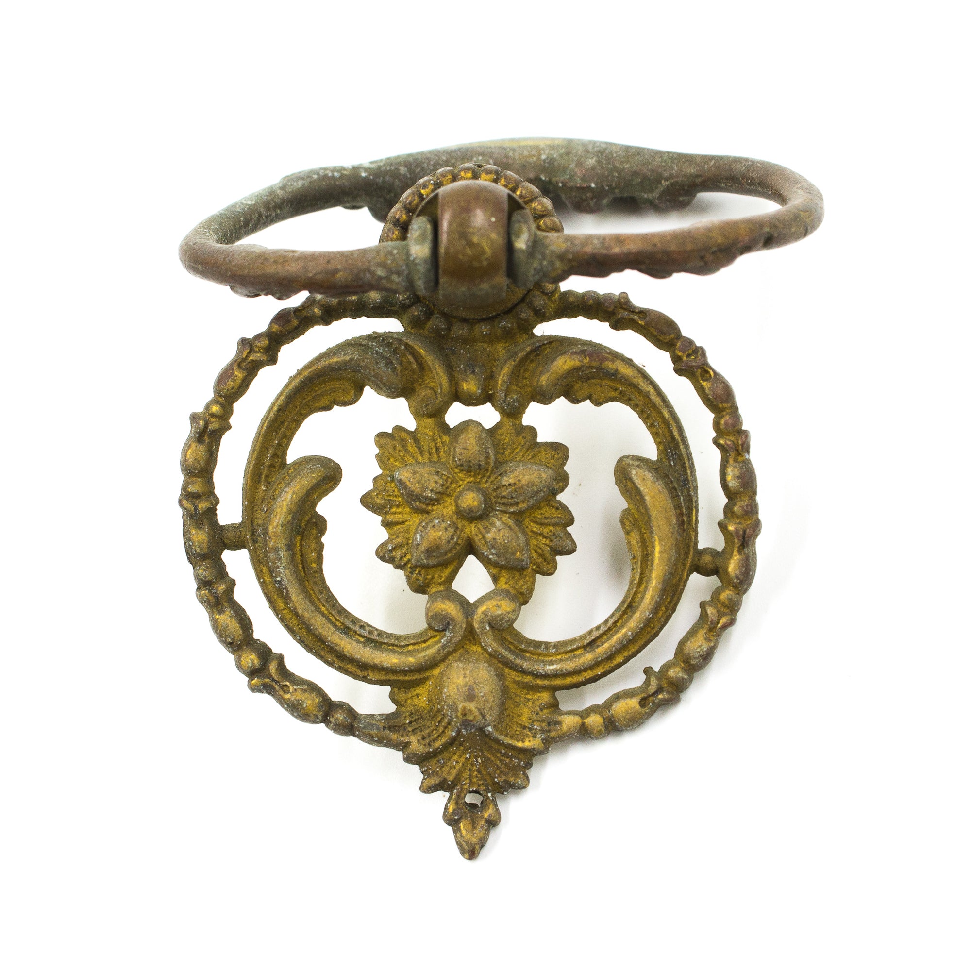 Stunning and ornate brass ring pulls featuring a detailed floral design. These are sure to stand out wherever they live! Reads "4863" and "ARC o" on the backs. Sold individually. 10 available.