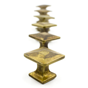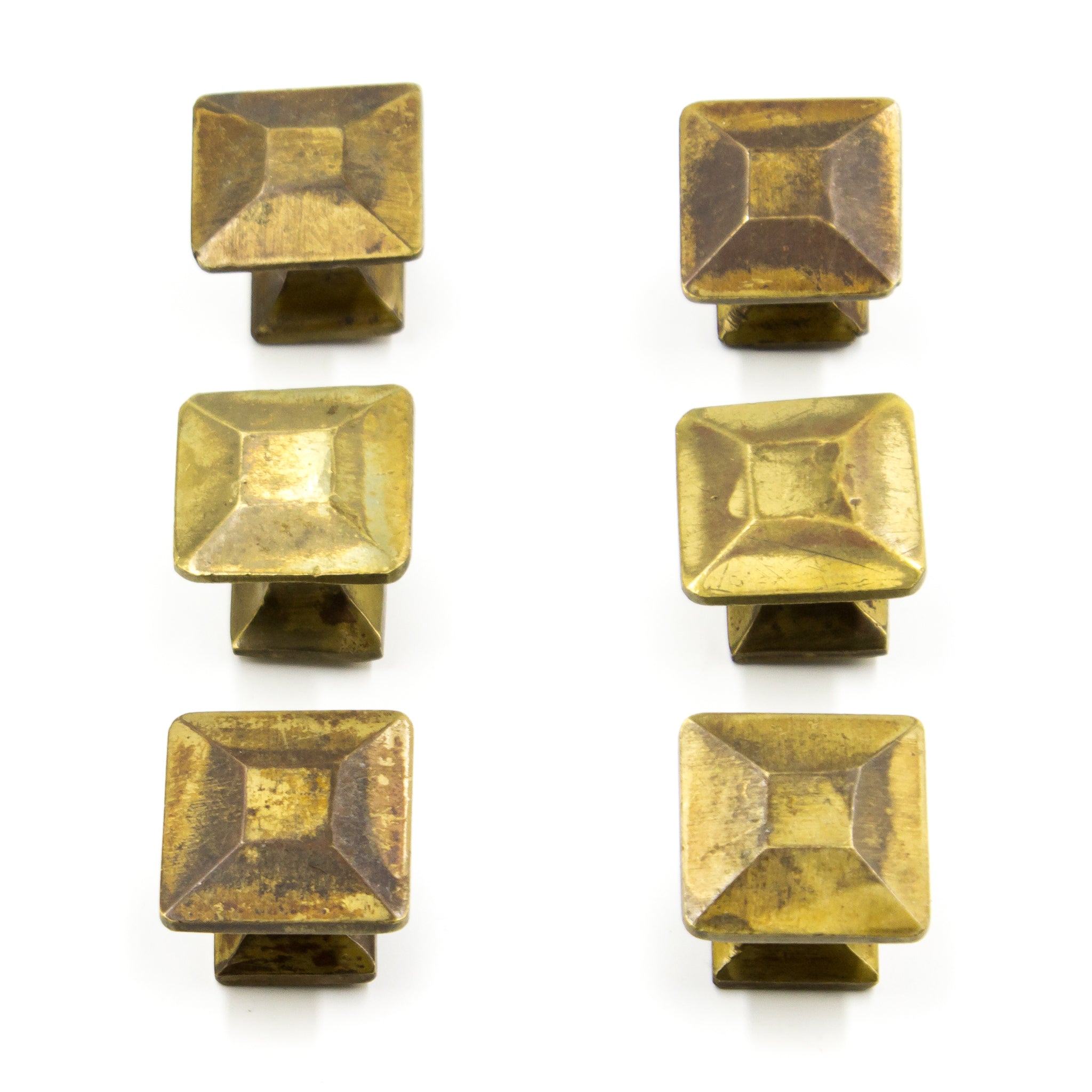 Lovely knobs with a square line. These knobs are a reproduction of a craftsman style and likely around 20 years old.