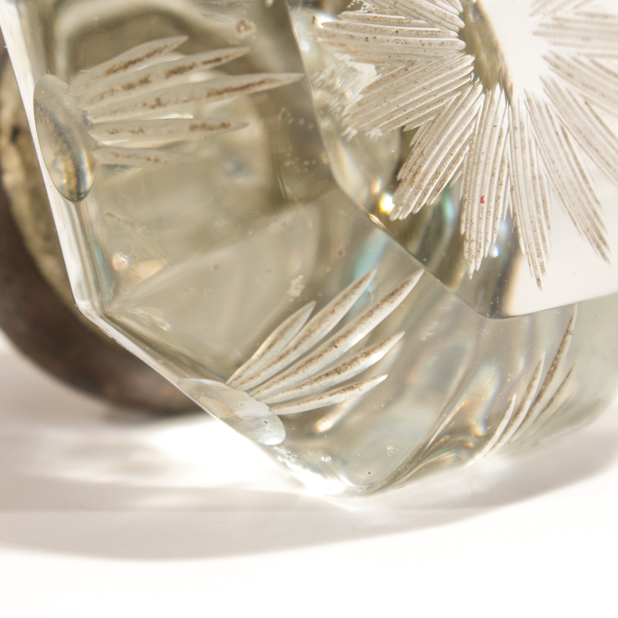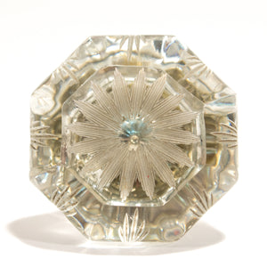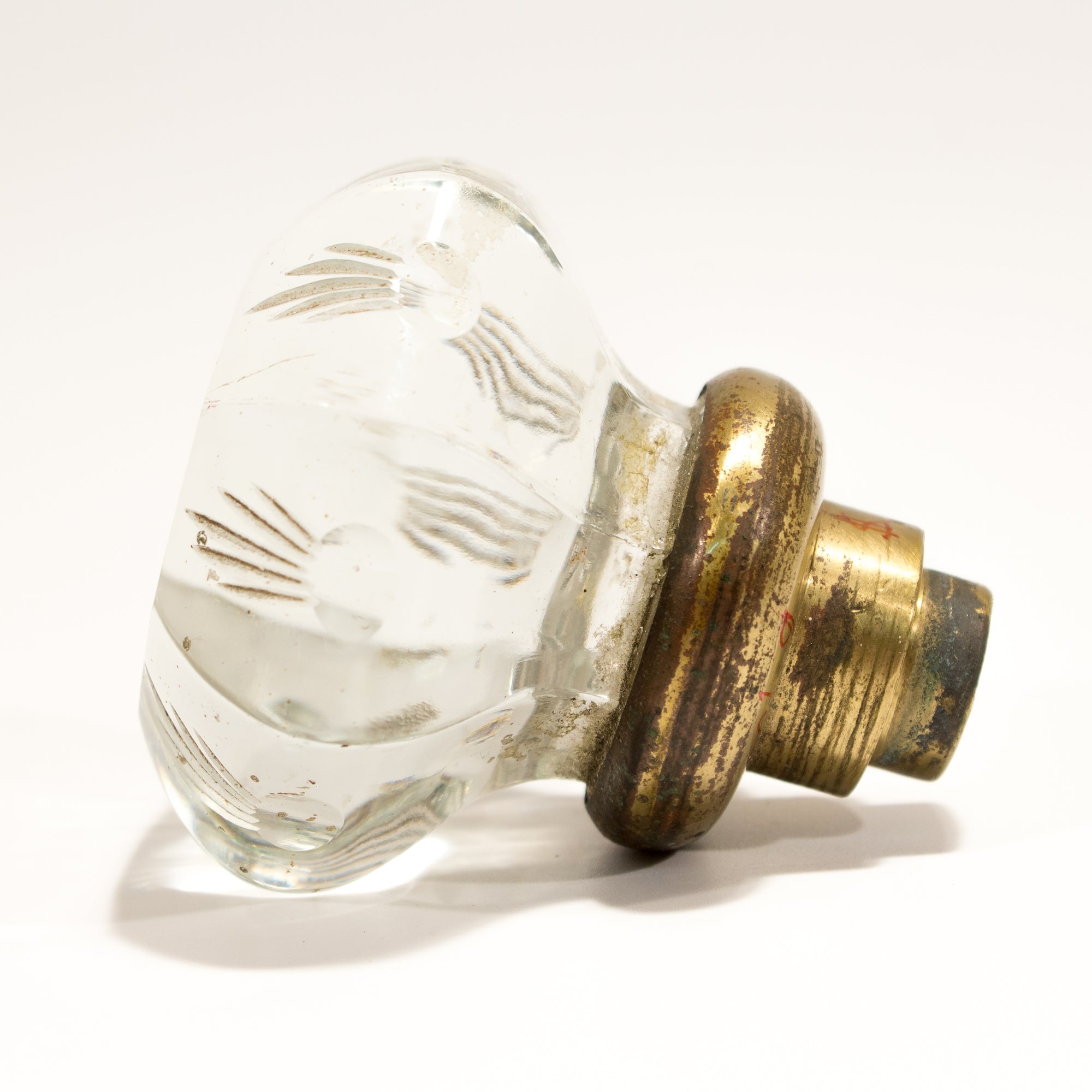 This unusual and striking doorknob would make an excellent accent piece. This knob is threaded onto a spindle and includes the side-mounted set screw. The base of the knob is cast brass.