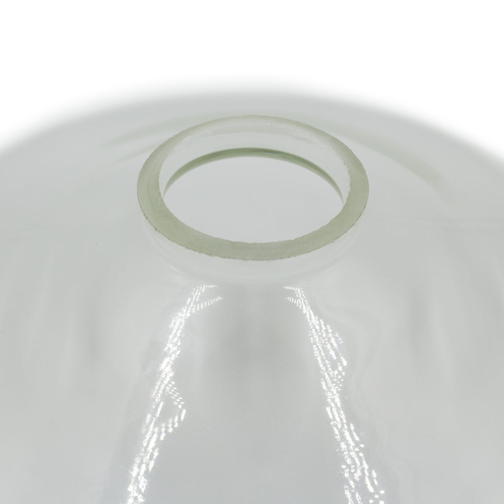 It's pretty clear, this shallow glass shade lets out all the light, in minimalist style. Great for showing off specialty bulbs!