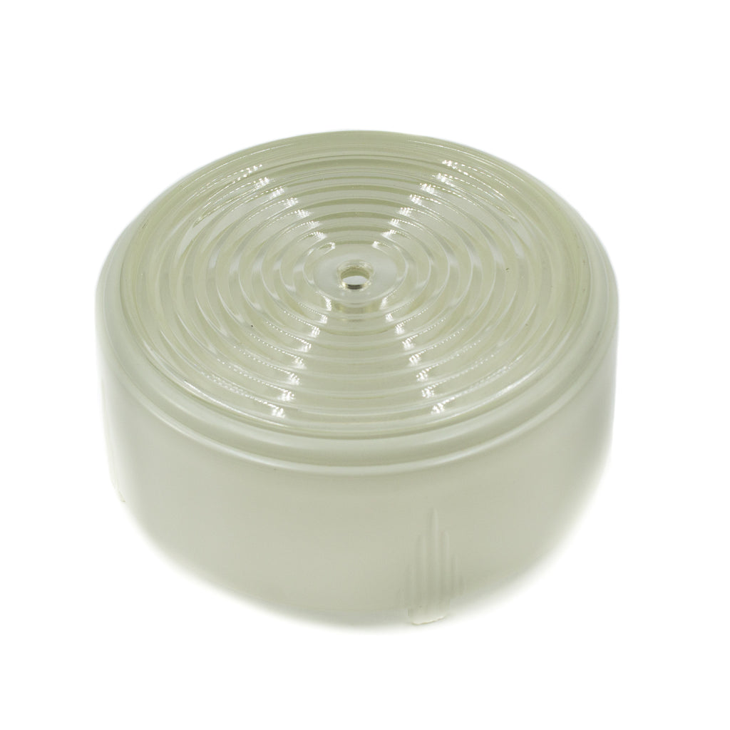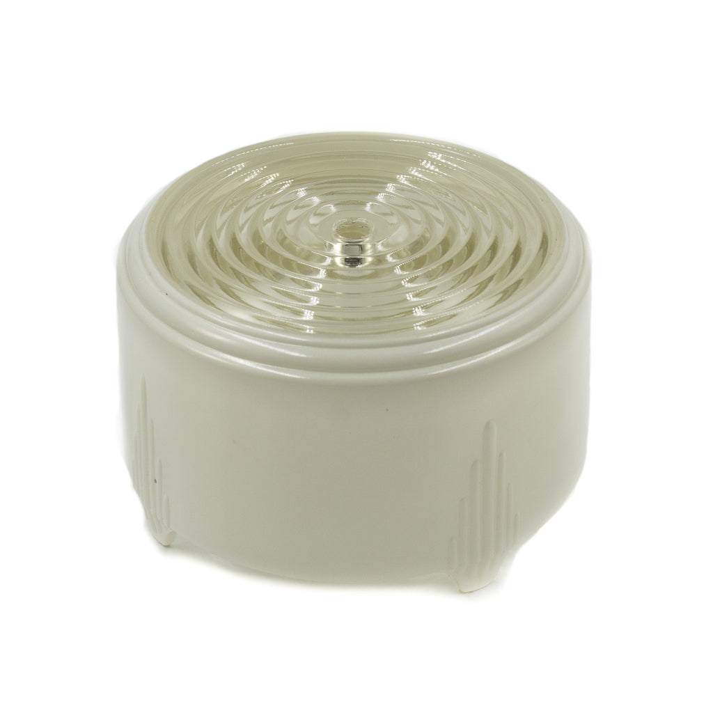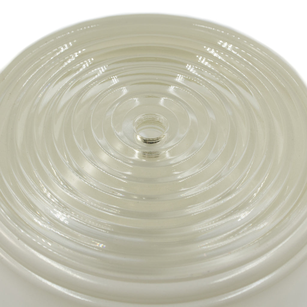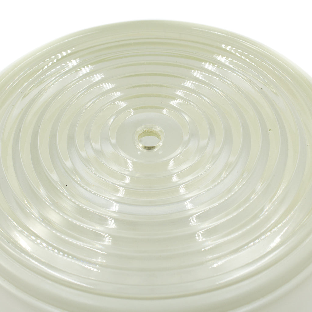 Large and small classic mid century white shades with clear concentric circle centers. A common combo of shade and light, for a very good reason!