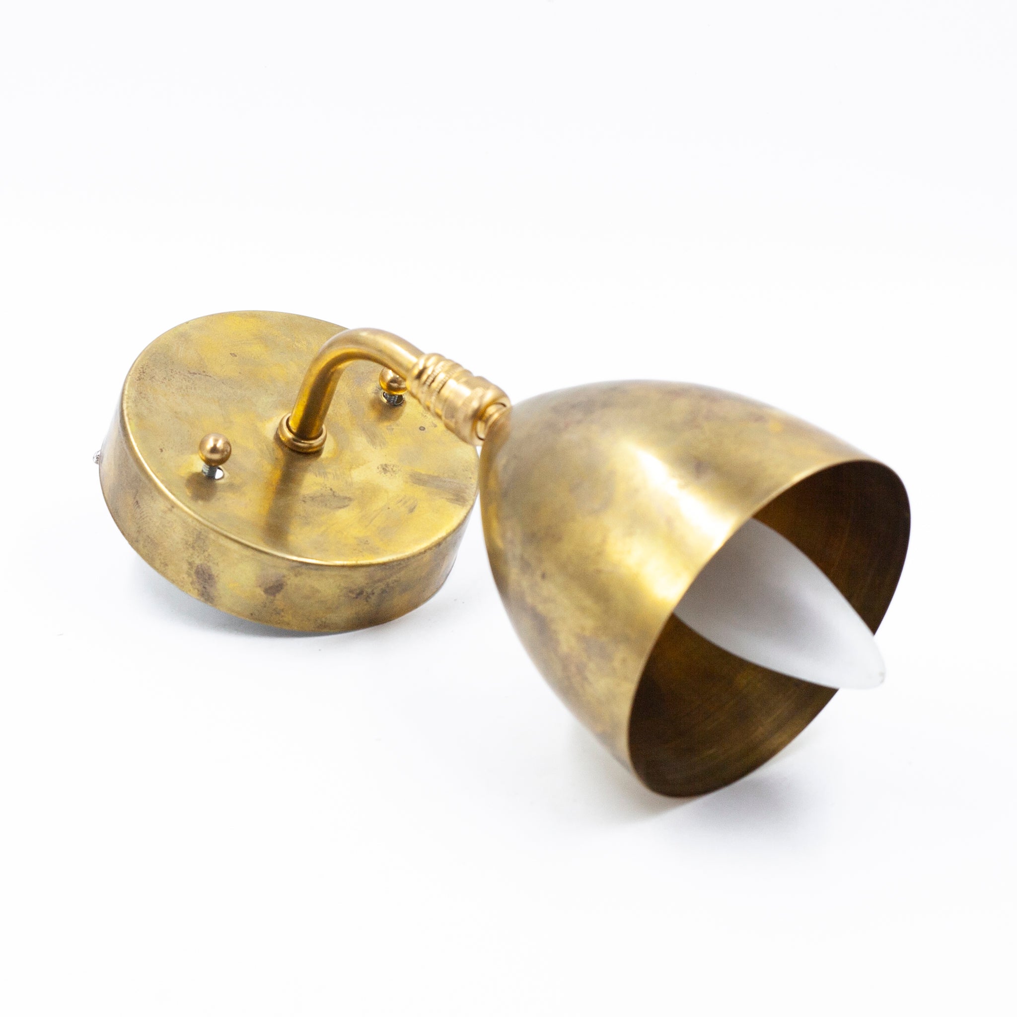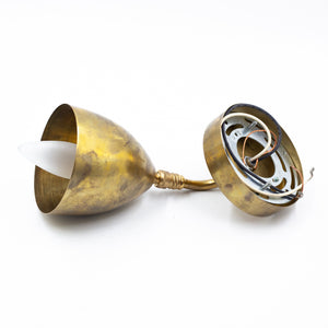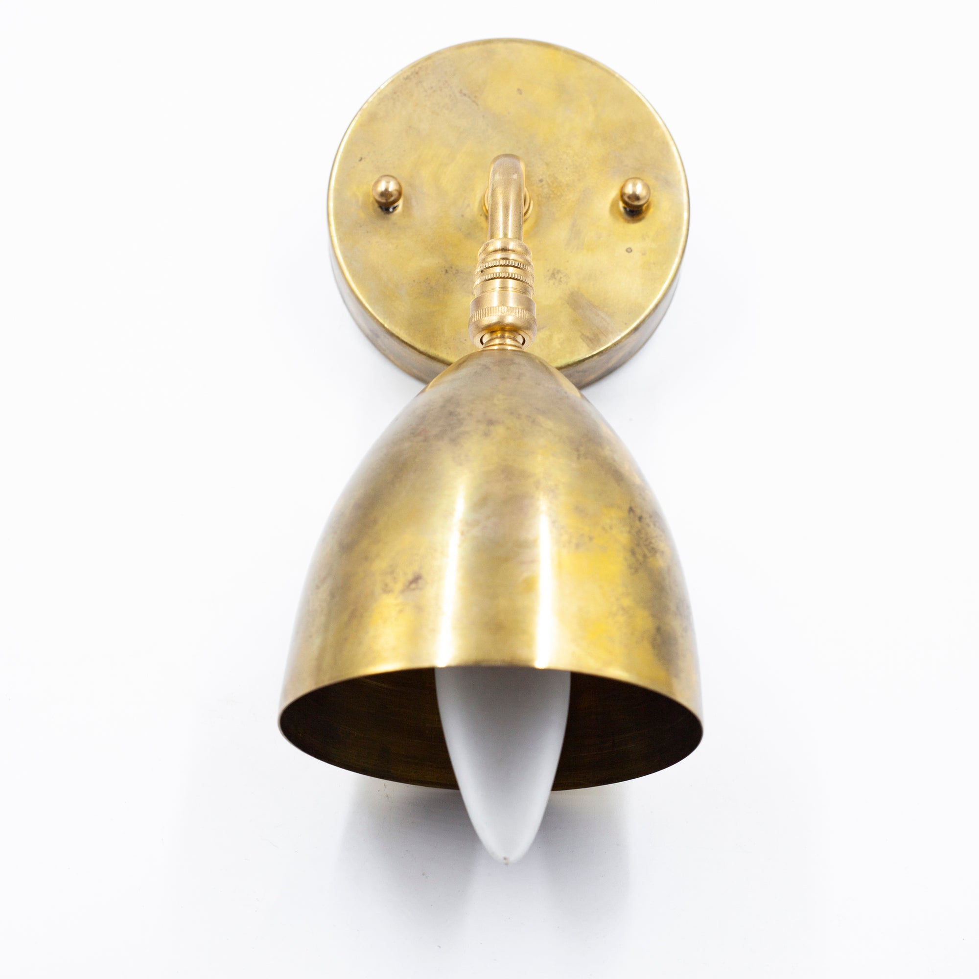 This brass wall sconce is UL wired by our certified lighting department. It is wired for dry locations only and takes a candelabra base bulb.