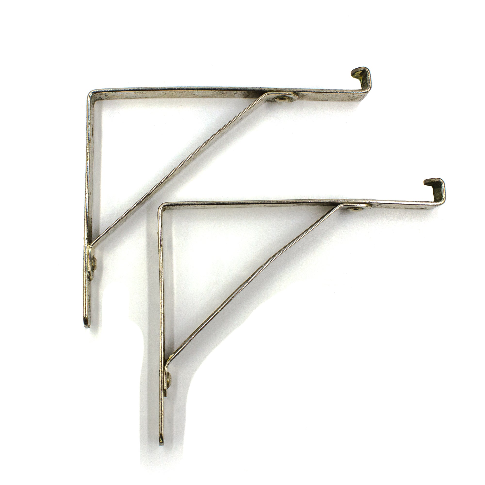 A lovely, classic design featured in many bathrooms between 1935 and 1955. These glass shelf brackets are a classic design that can fit in nearly anywhere while still giving that vintage nod. Sold as a pair of 2. 1 set available.