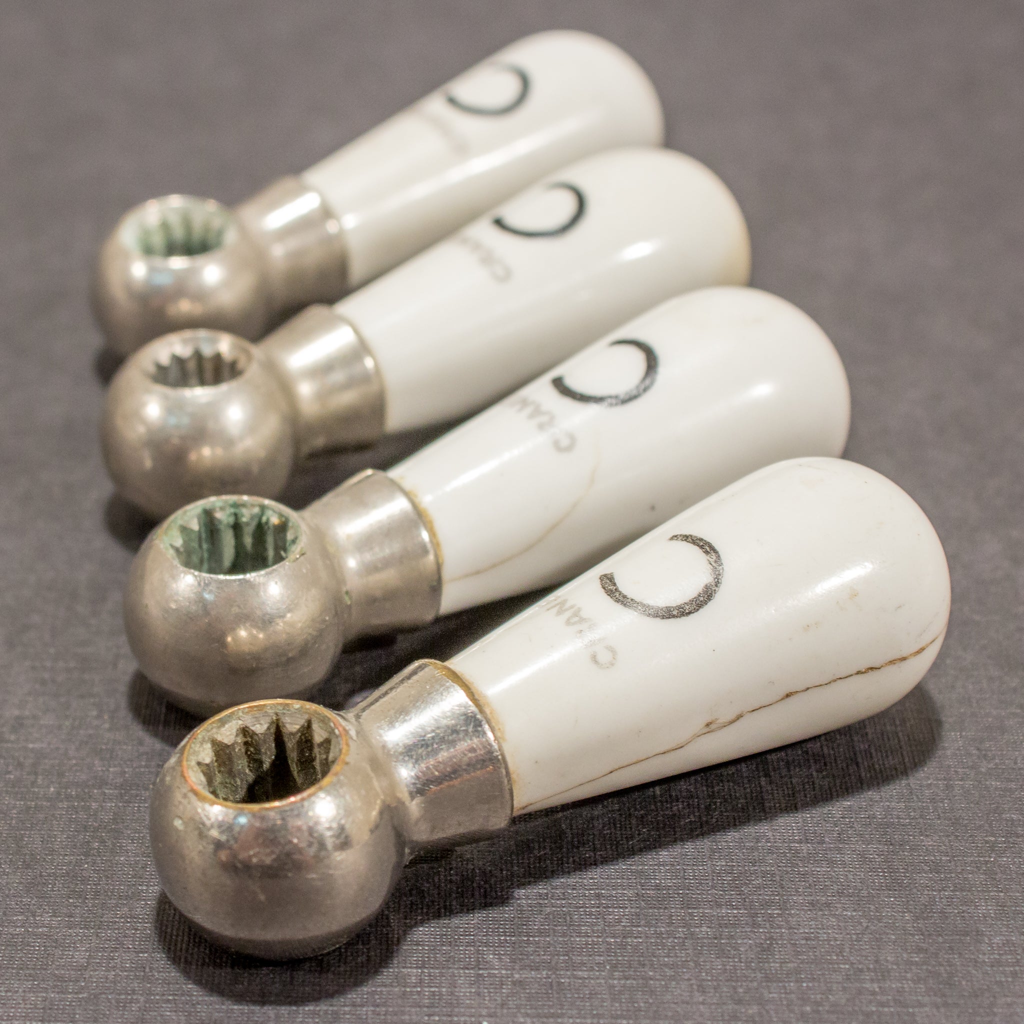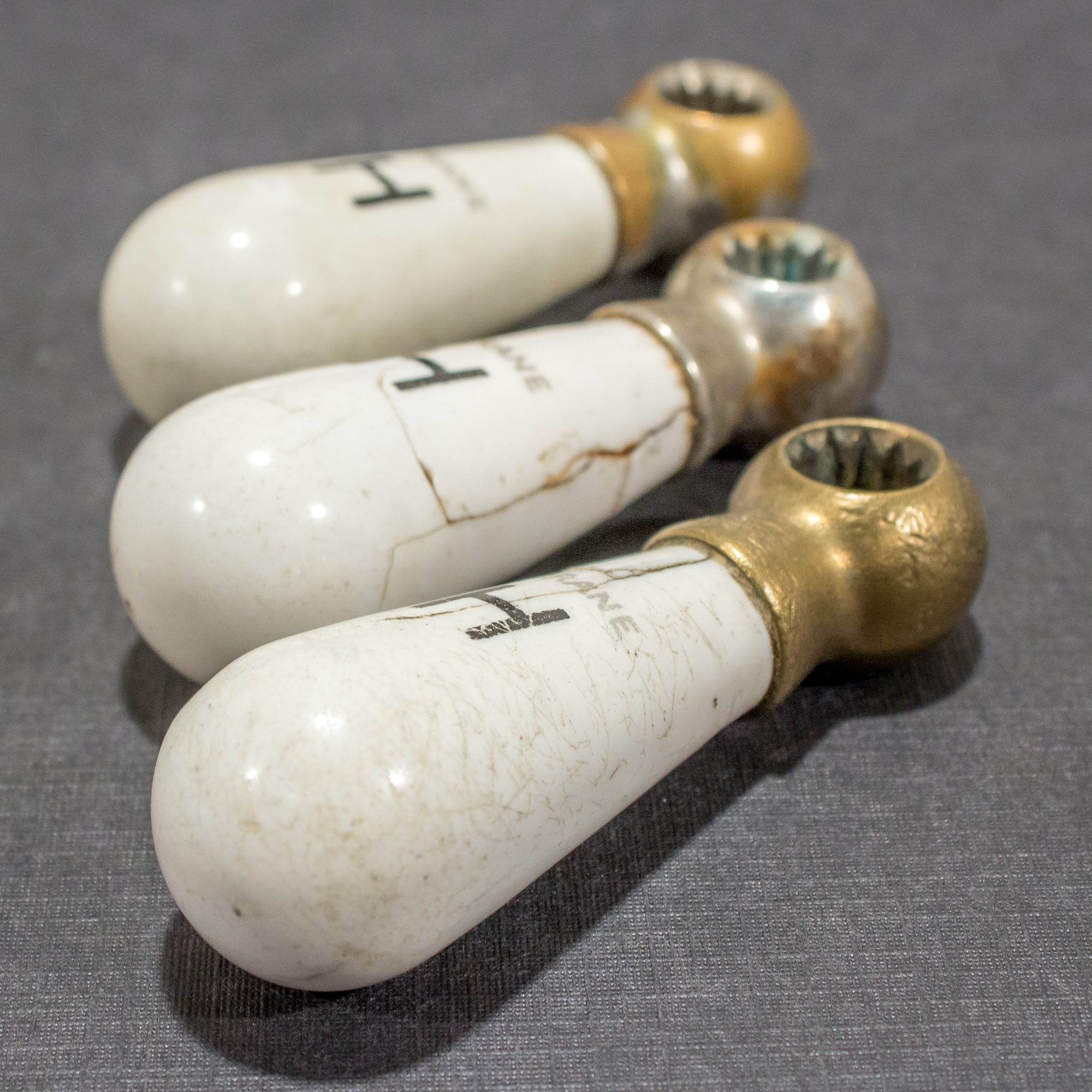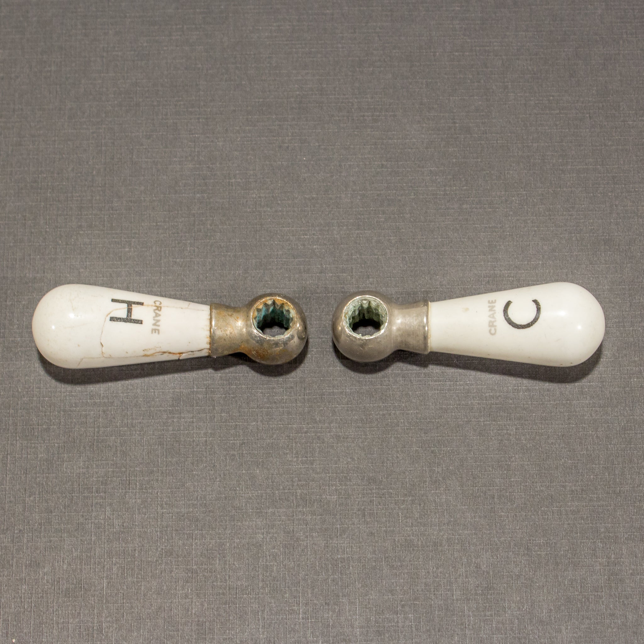 If you are looking for a replacement Crane handle and want to save a little cash, these handles offer a nice alternative. These porcelain levers are cracked but still functional.