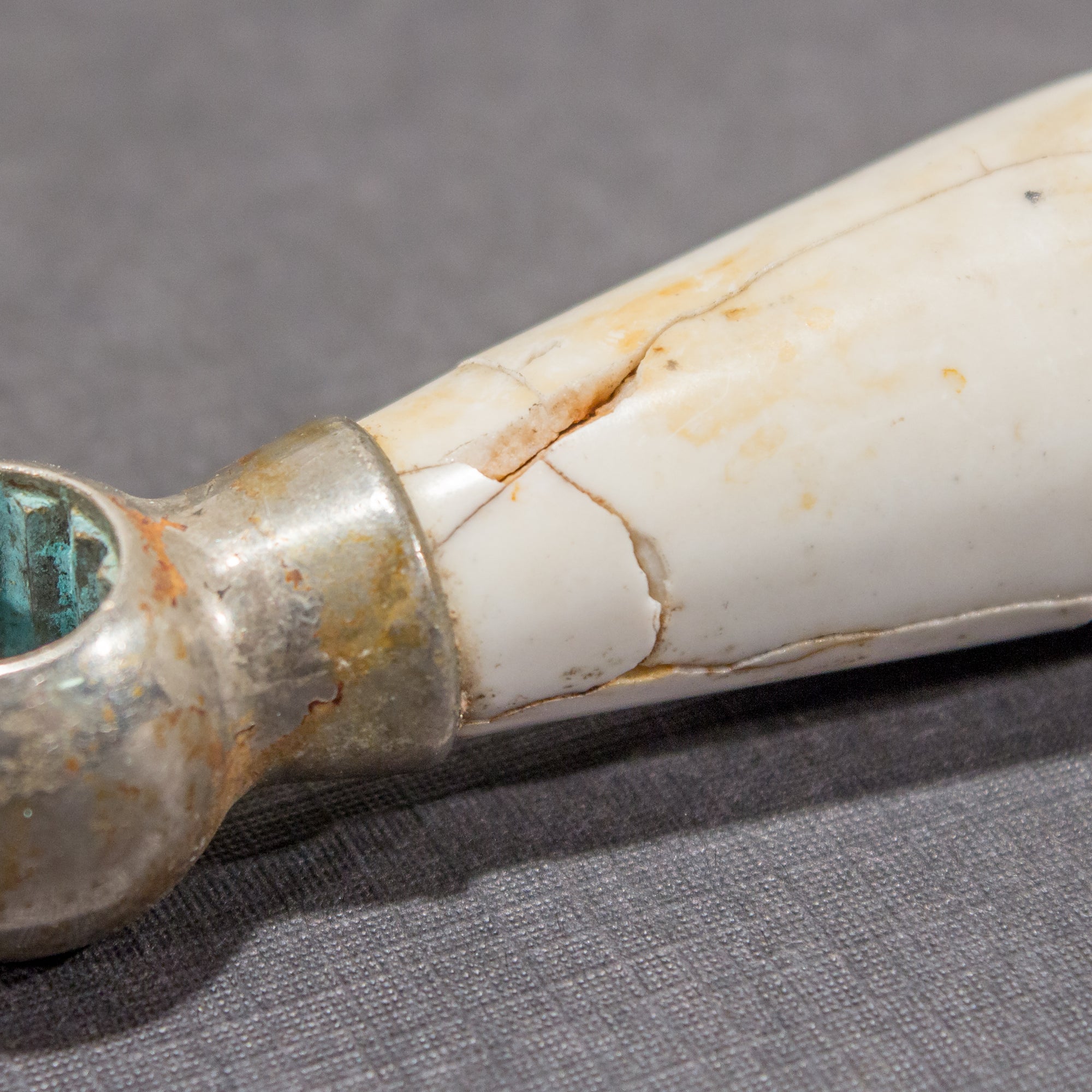 Condition: Significant cracking and scratches on the hot handles, a little one of the cold handles, some oxidation in the screw holes.
