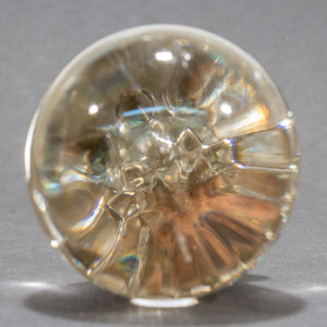 Have your door stand out with this lovely round glass doorknob. Unusual and eye catching, this knob features a bright center mercury star. Mounts onto a straight spindle (no threads). Sold individually.