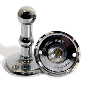 Elegant and timeless, these reproduction toilet paper holder ends are made by high end manufacturer Samuel Health. These ends are part of the Novis toilet paper holder (serial N1052). Made of chrome plated cast brass.