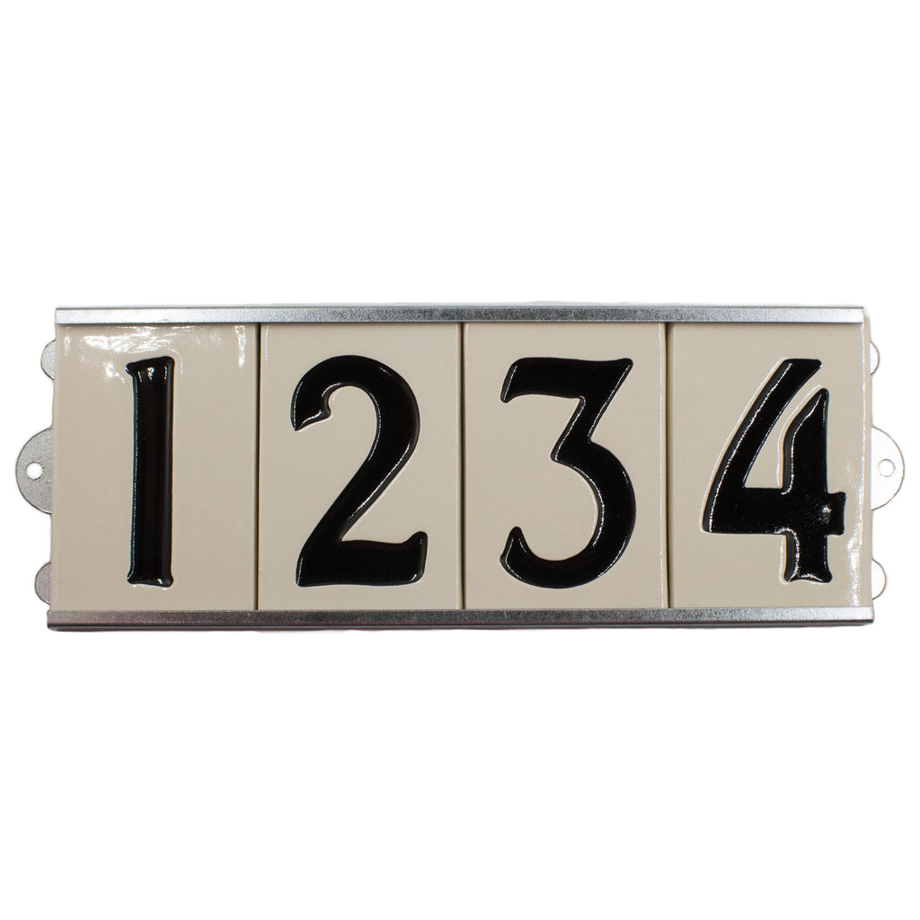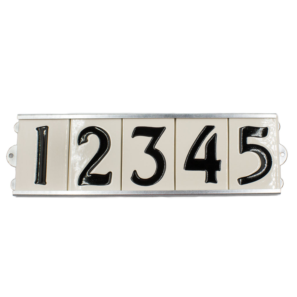 These brackets are the right size for these reproduction Ceramic Tile Portland House Numbers.  Available in three sizes - for 3, 4, or 5 house tiles.  These are made of simple stamped steel with a cardboard insert which can be left in to keep numbers snug.  After mounting the bracket and sliding the numbers in, there are four small rounded tabs which can be bent up to keep numbers from shimmying out.