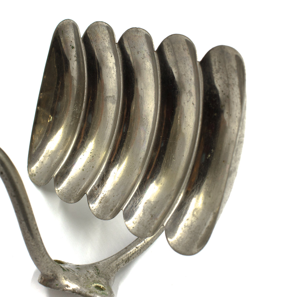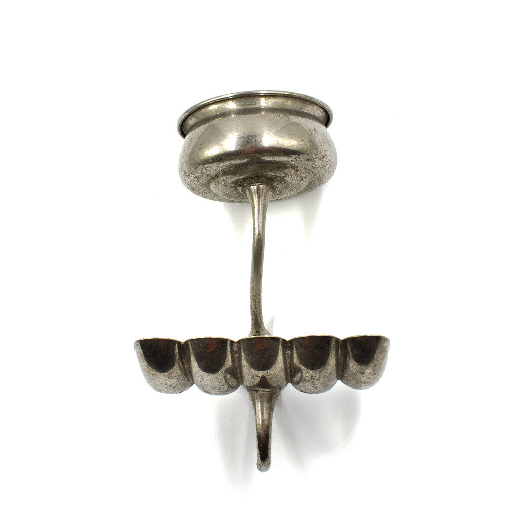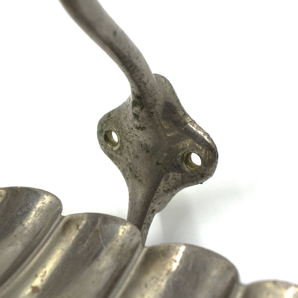 A great little nickel plated brass cup holder and scalloped soap dish. This combo is an antique bathroom must-have.