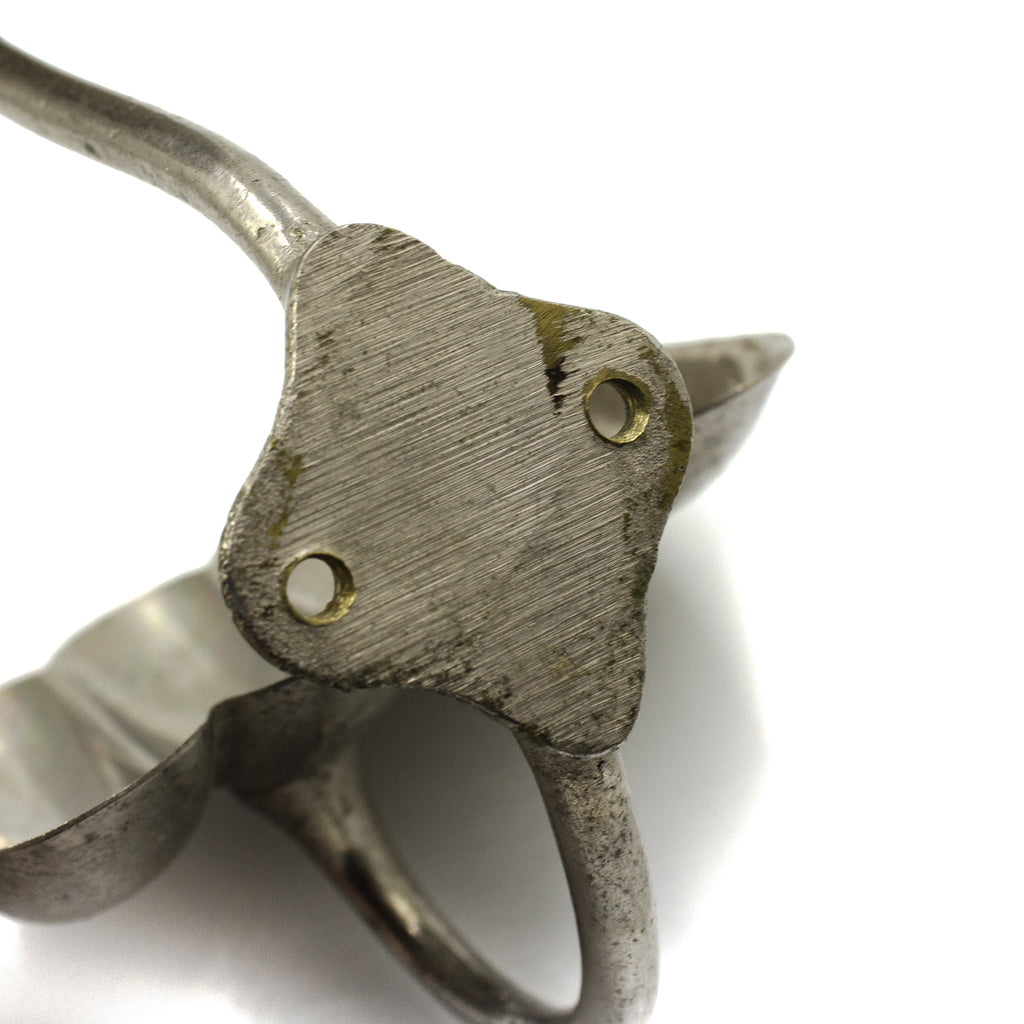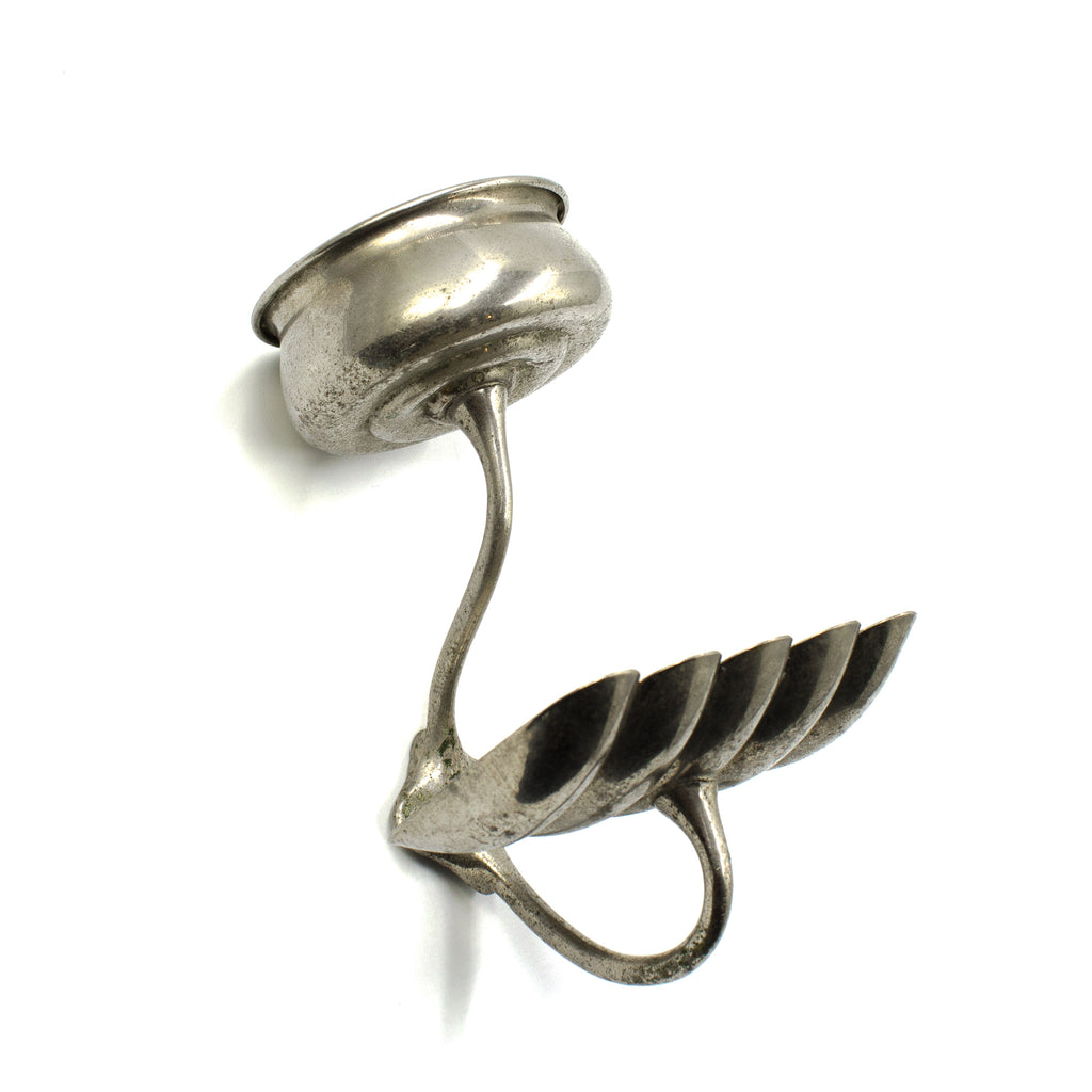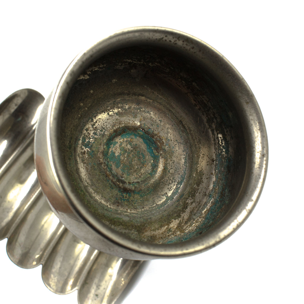 A great little nickel plated brass cup holder and scalloped soap dish. This combo is an antique bathroom must-have.