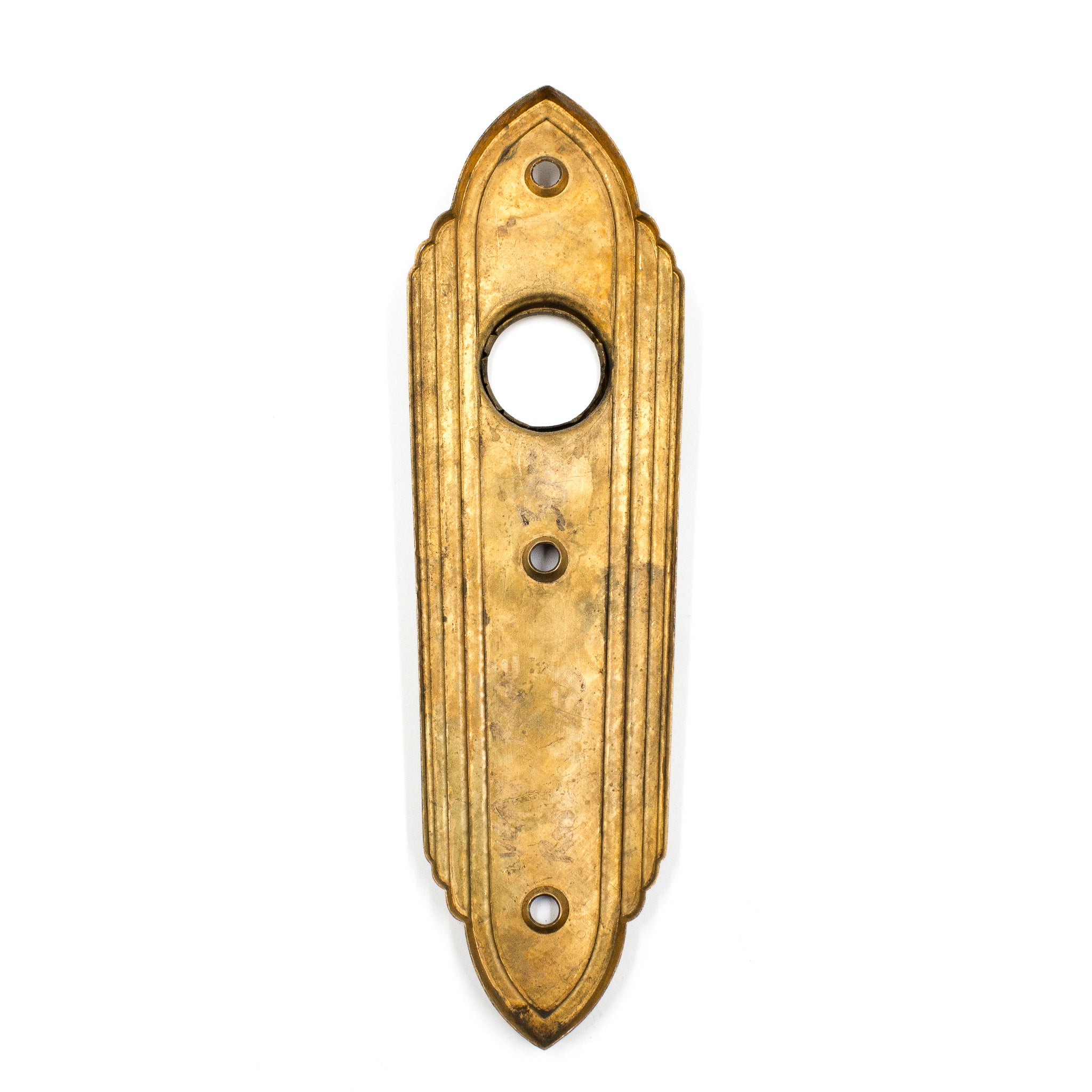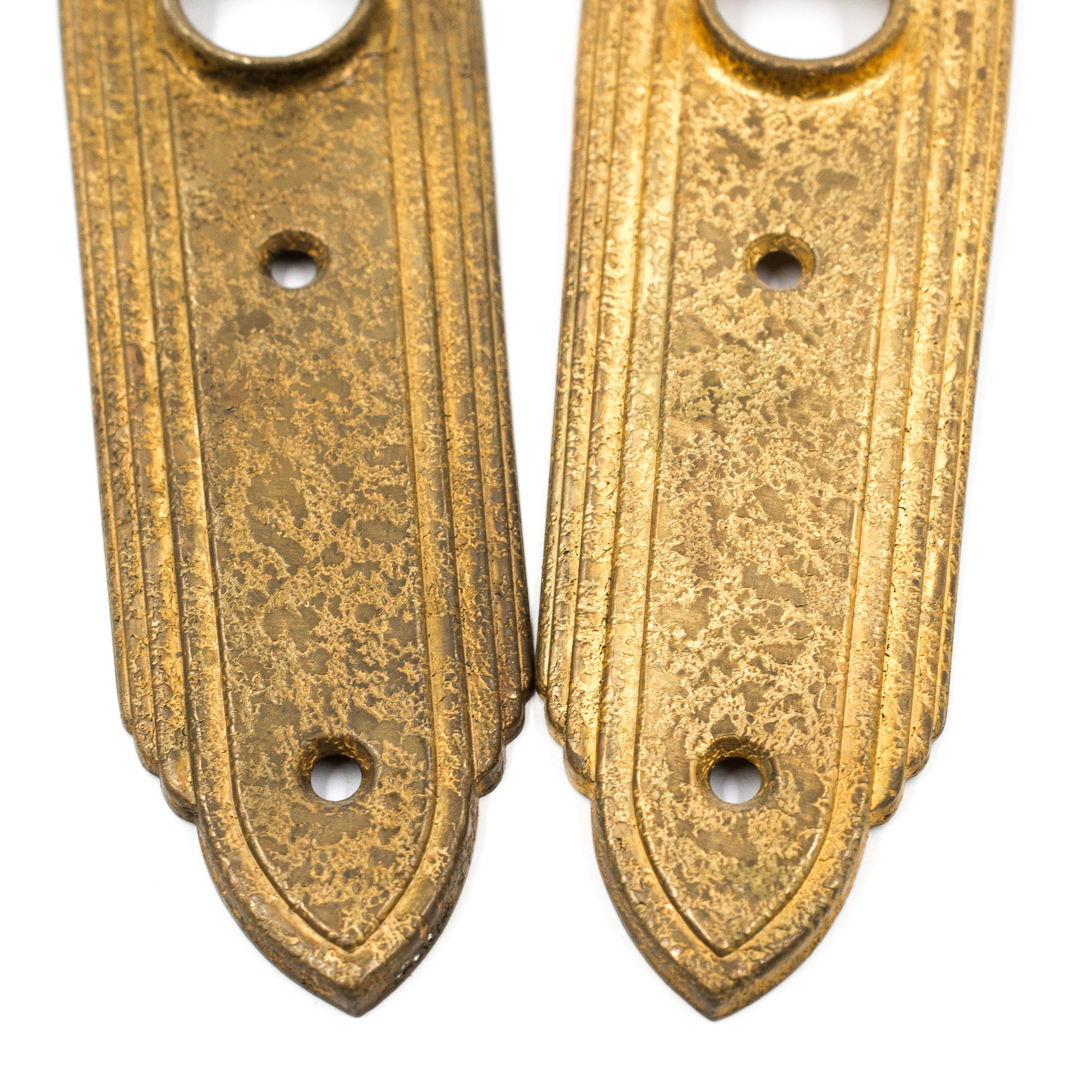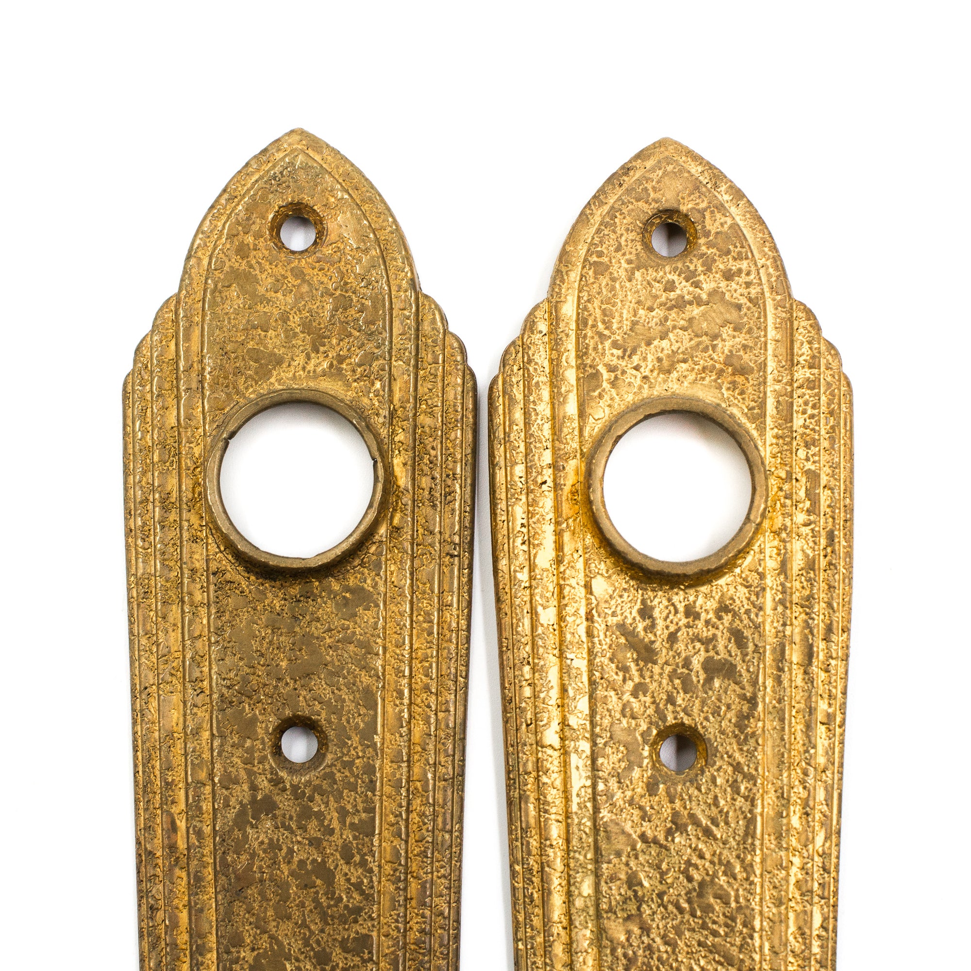 This escutcheons are boasting some gorgeous texture and rosy brass finish. Graceful side lines and a place for turn thumbs, if you need.