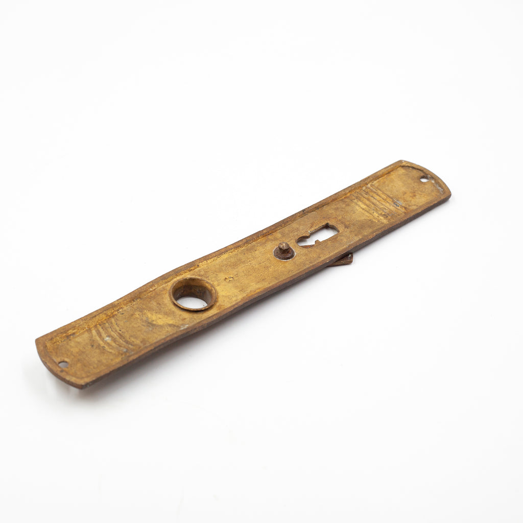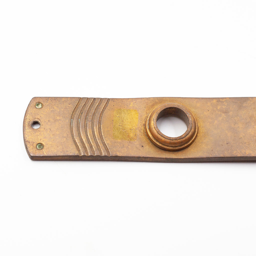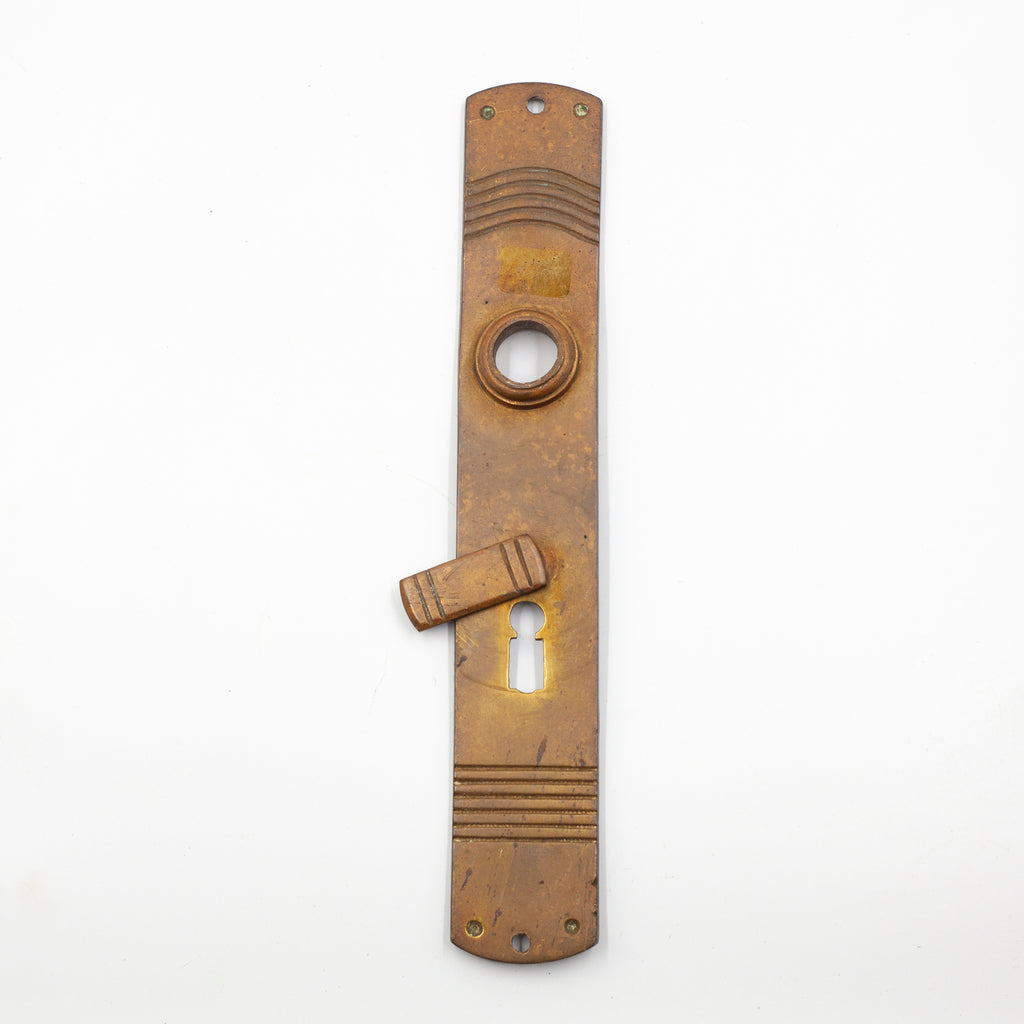 This escutcheon is a unique find for sure, not your average shape or style and that's what we love about it! Streamline grooves and a generous helping of handsome patina.