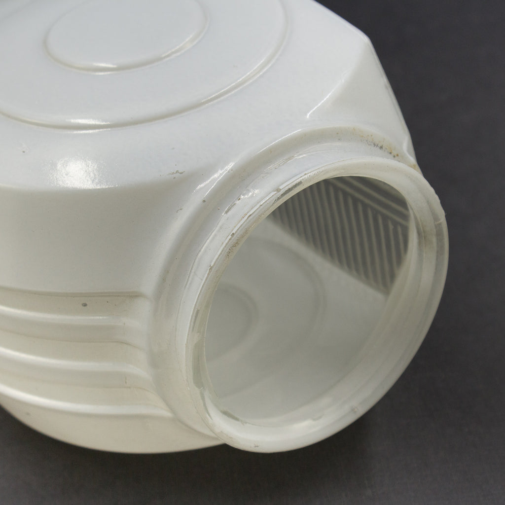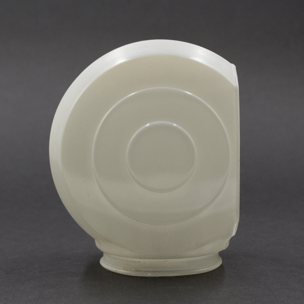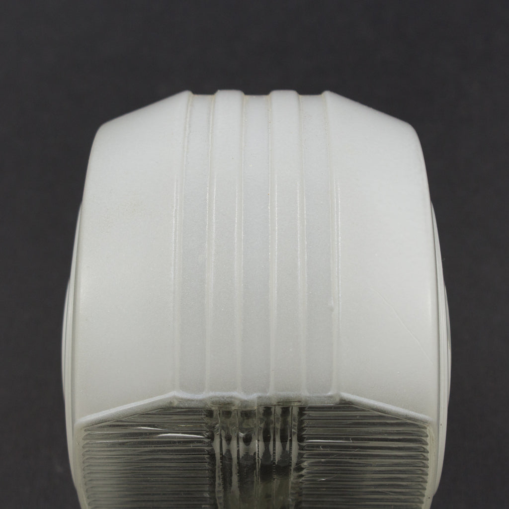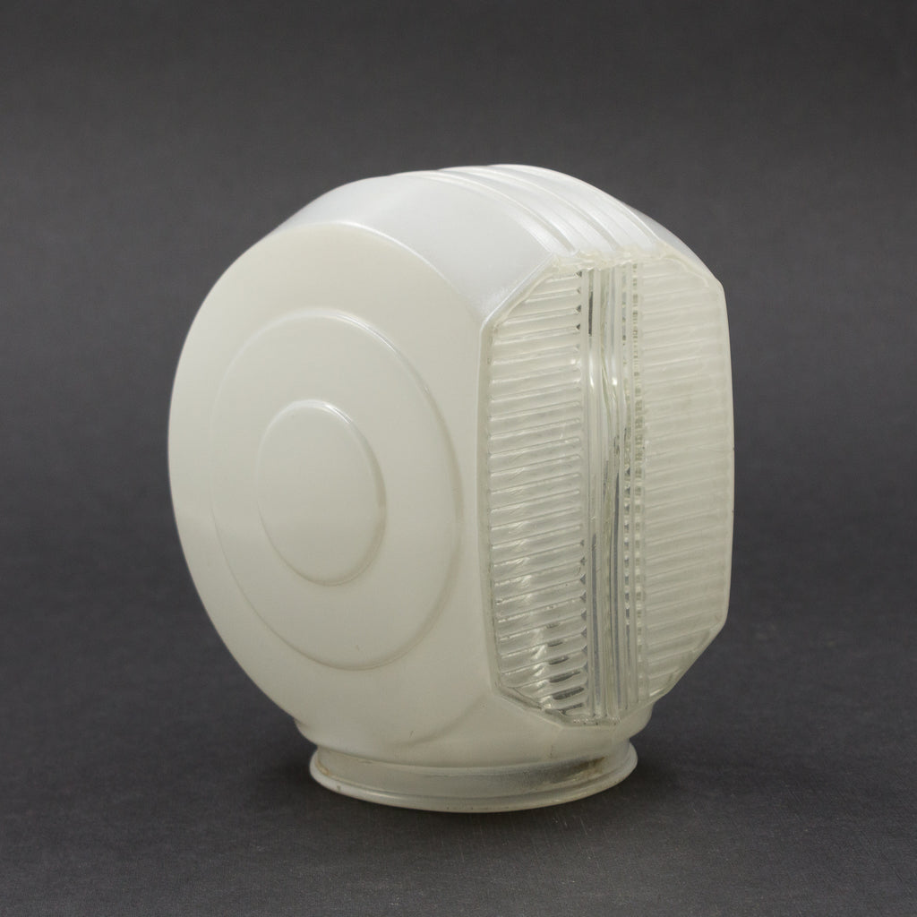 That's no Tron helmet! It's one of the many slight variations of a great sconce shade. White glass to shade and a clear, faceted, window to throw just the right amount of light.