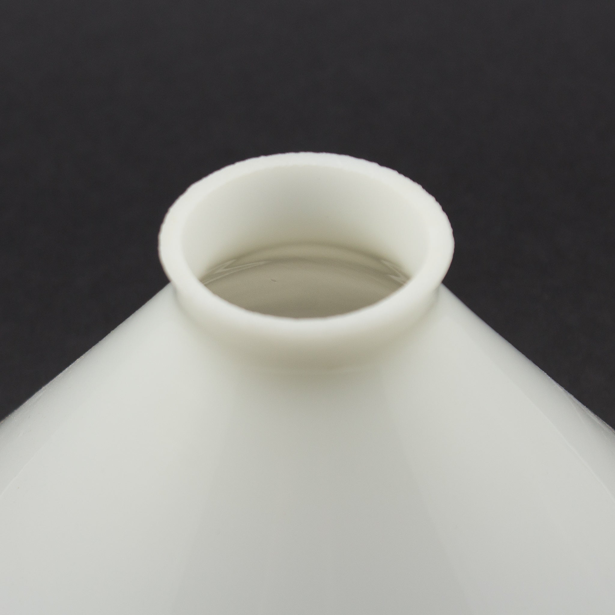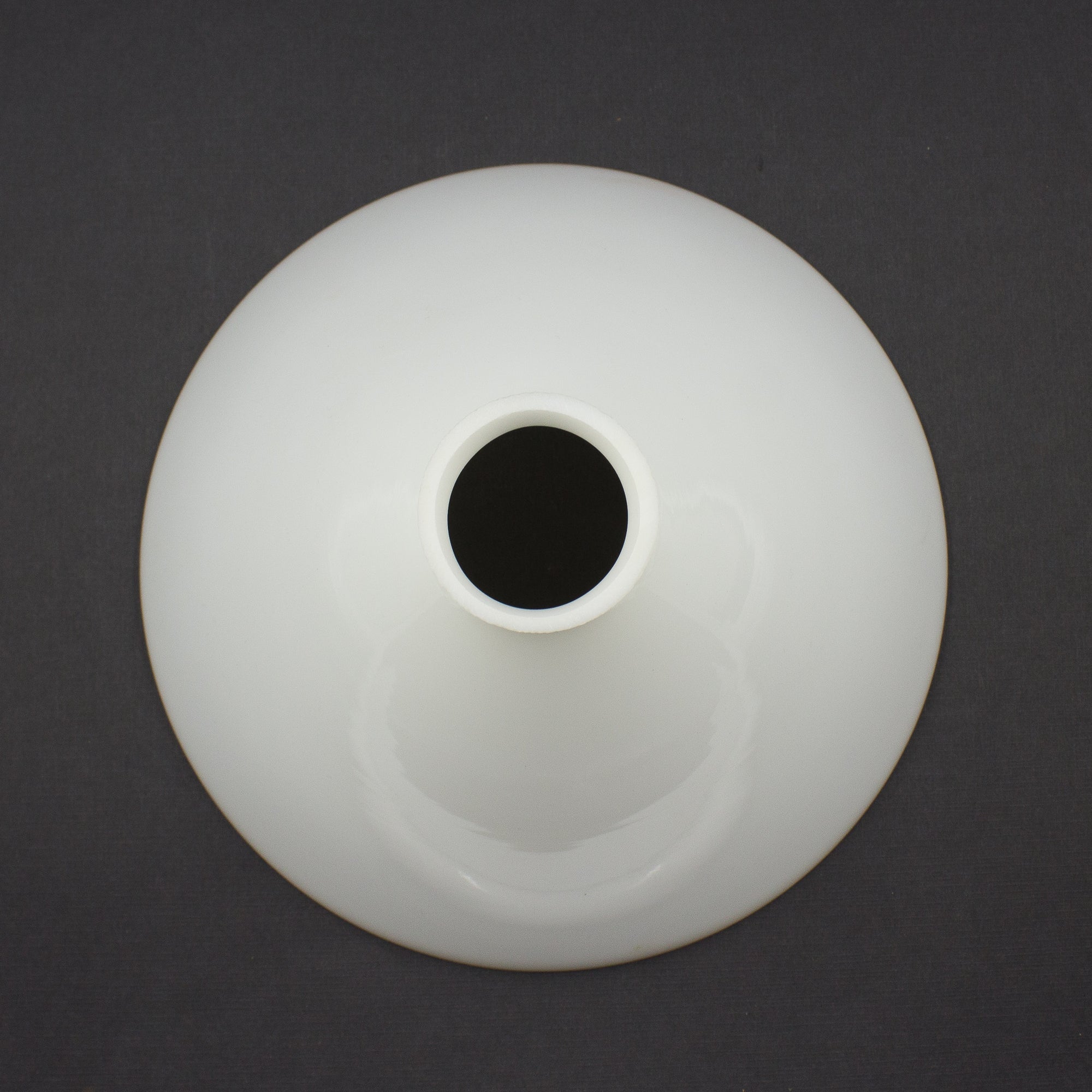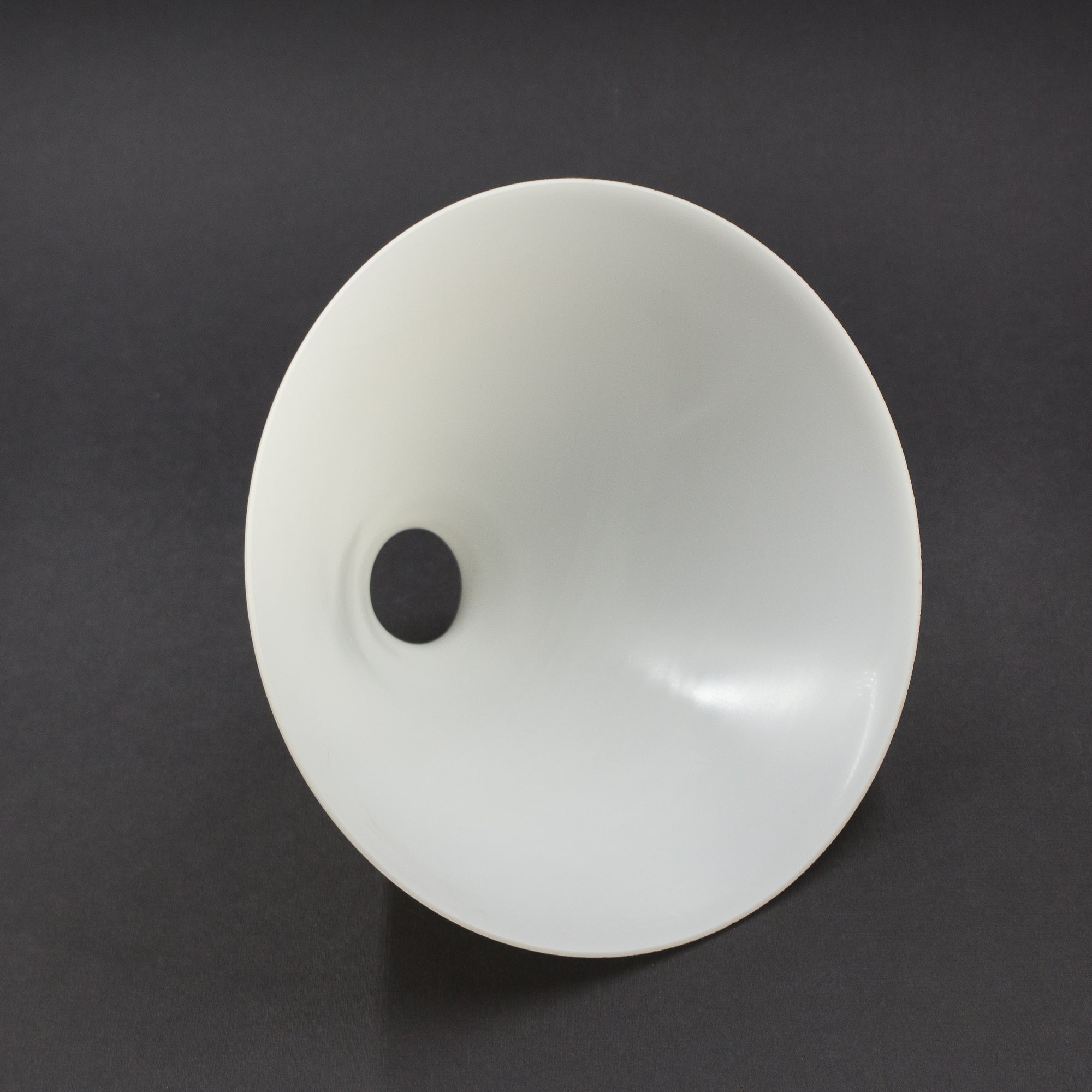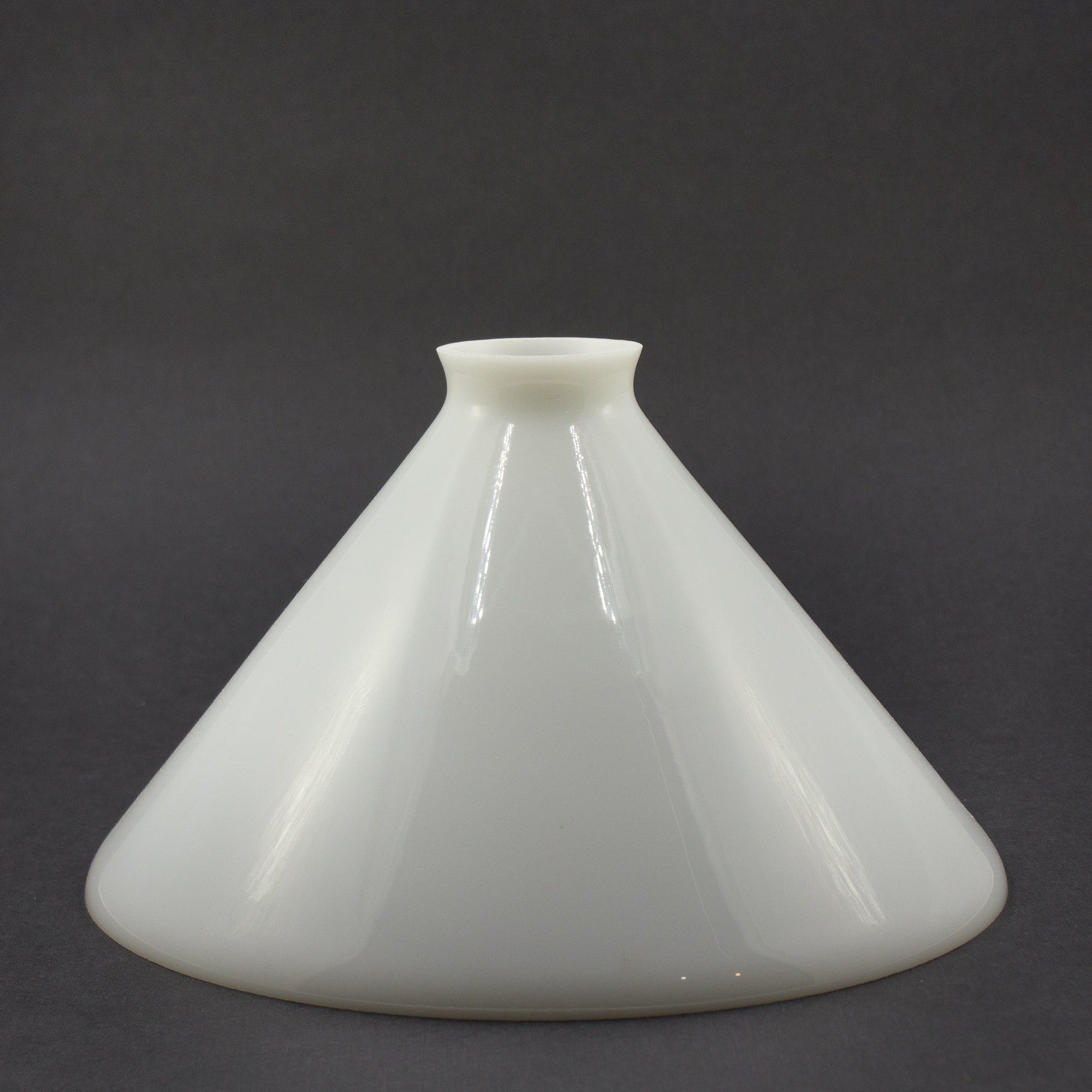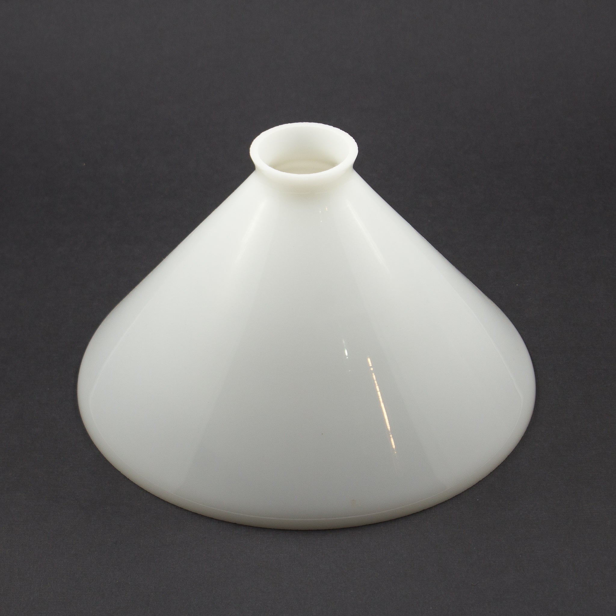 This shade's milk glass look certainly displays a softer side to the industrial lighting style.