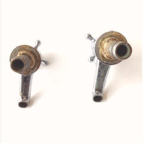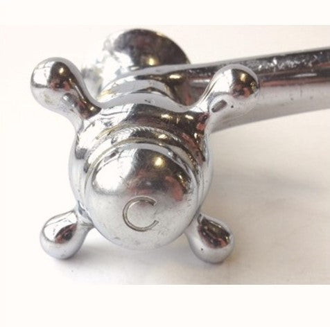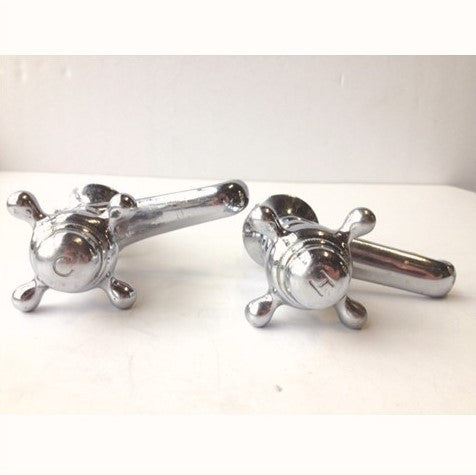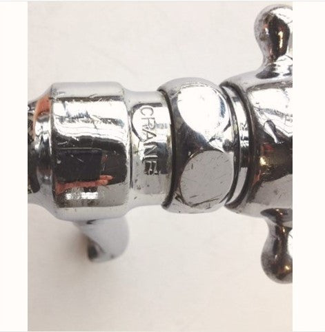These matched set of Hot/Cold taps showcase the great style of Crane. Because this set is commercial, the knobs are spring-loaded to snap back into place once the pressure is removed. This means that water only flows when the knob is being actively twisted (in other words, you can't turn the knob 'on' and take you hand away, it will spring back off). Made of solid brass with chrome plating.