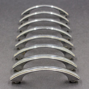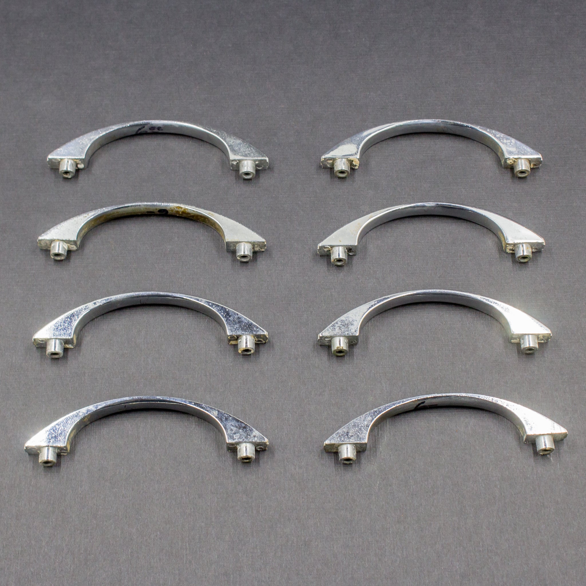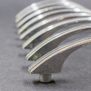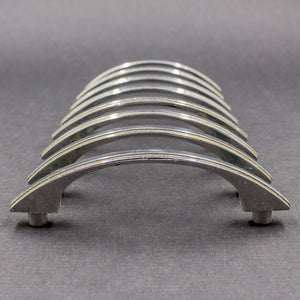 A great way to get the classic horizontal late Deco stripes while having something a bit unusual. These thin pulls highlight the horizontal and flash with bright chrome. Sold individually.